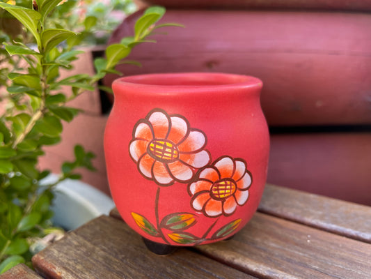 Red Ceramic Pots Floral Pattern Succulent Cactus Pots Draining Hole