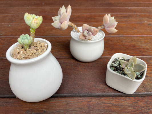 3x White Ceramic pots succulent cactus small plant planter mini size