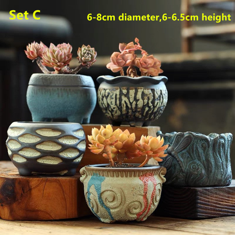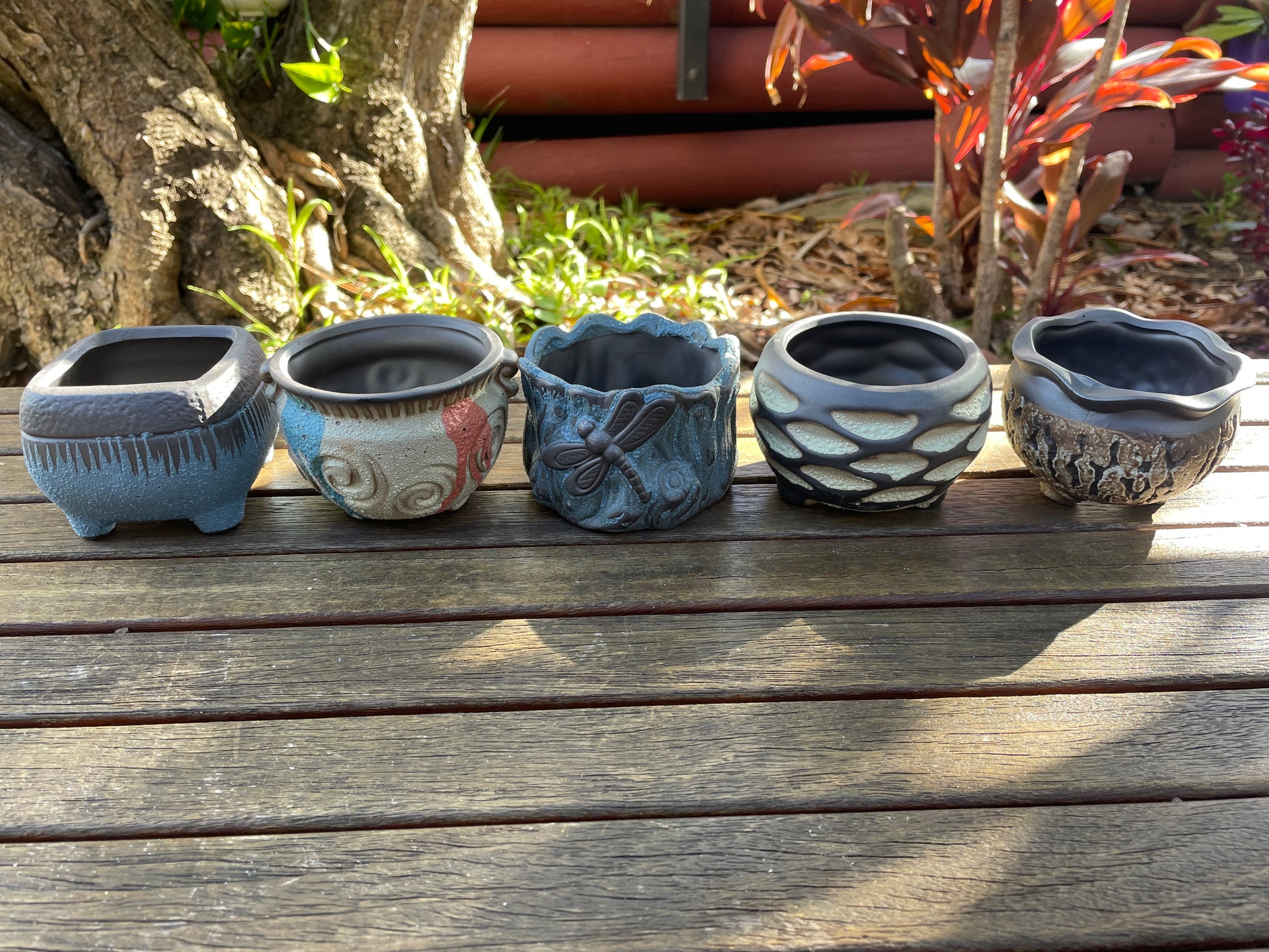 5x Ceramic Pots Set Succulent Cactus Planter Draining Hole 6-8cm Diameter
