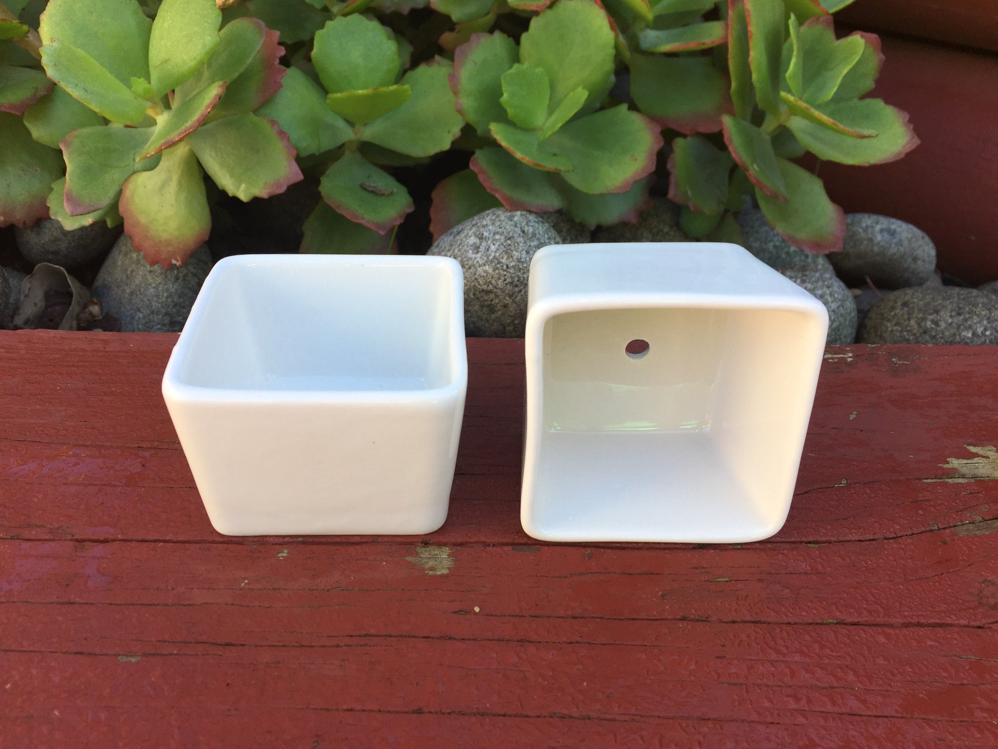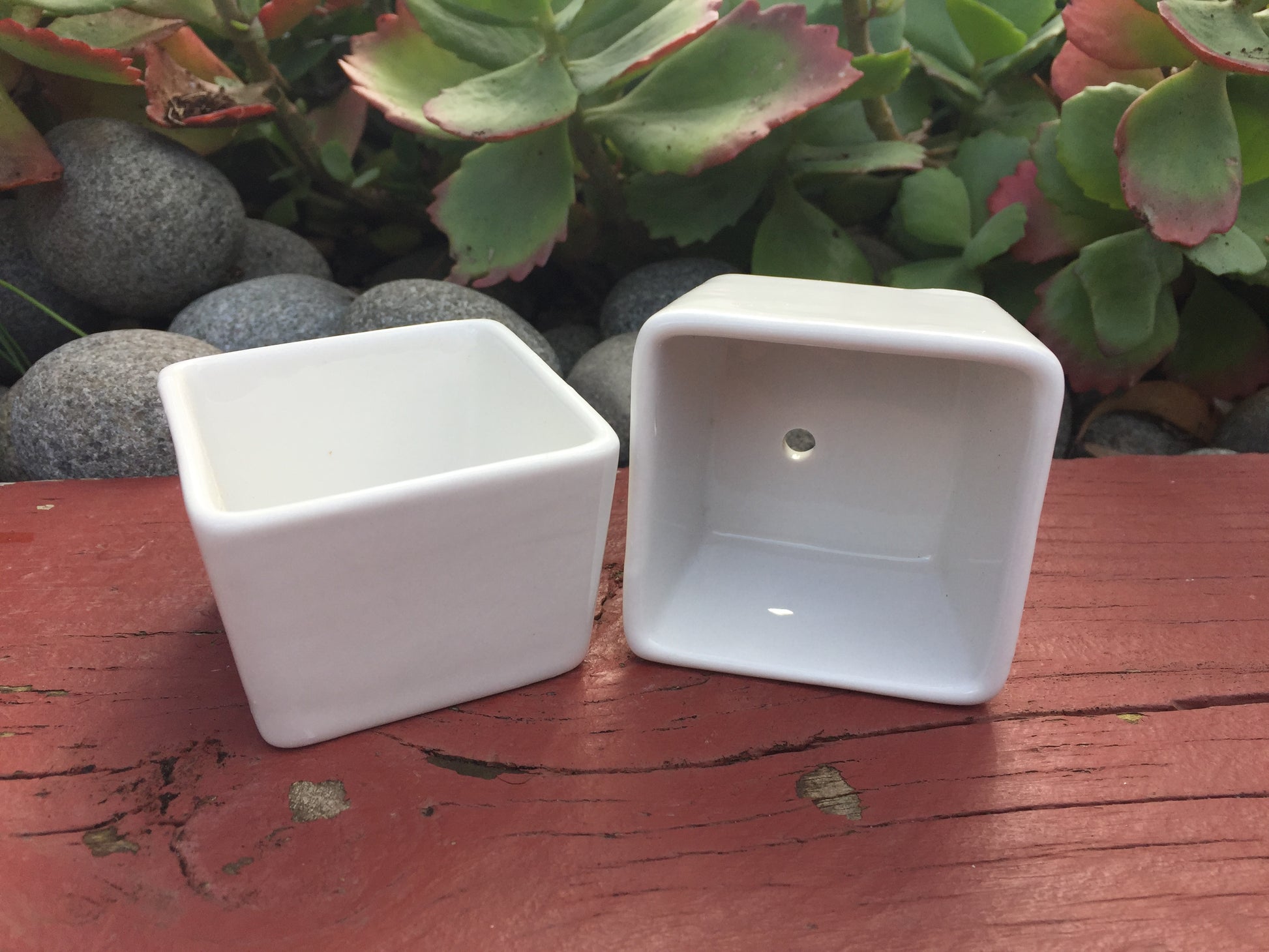 These small white glazed ceramic pots can be planted succulents, cactus or small plants, will decorate your home or office. There is leaking hole at the bottom, good for the plant growing. Glazed ceramic is easy to clean.