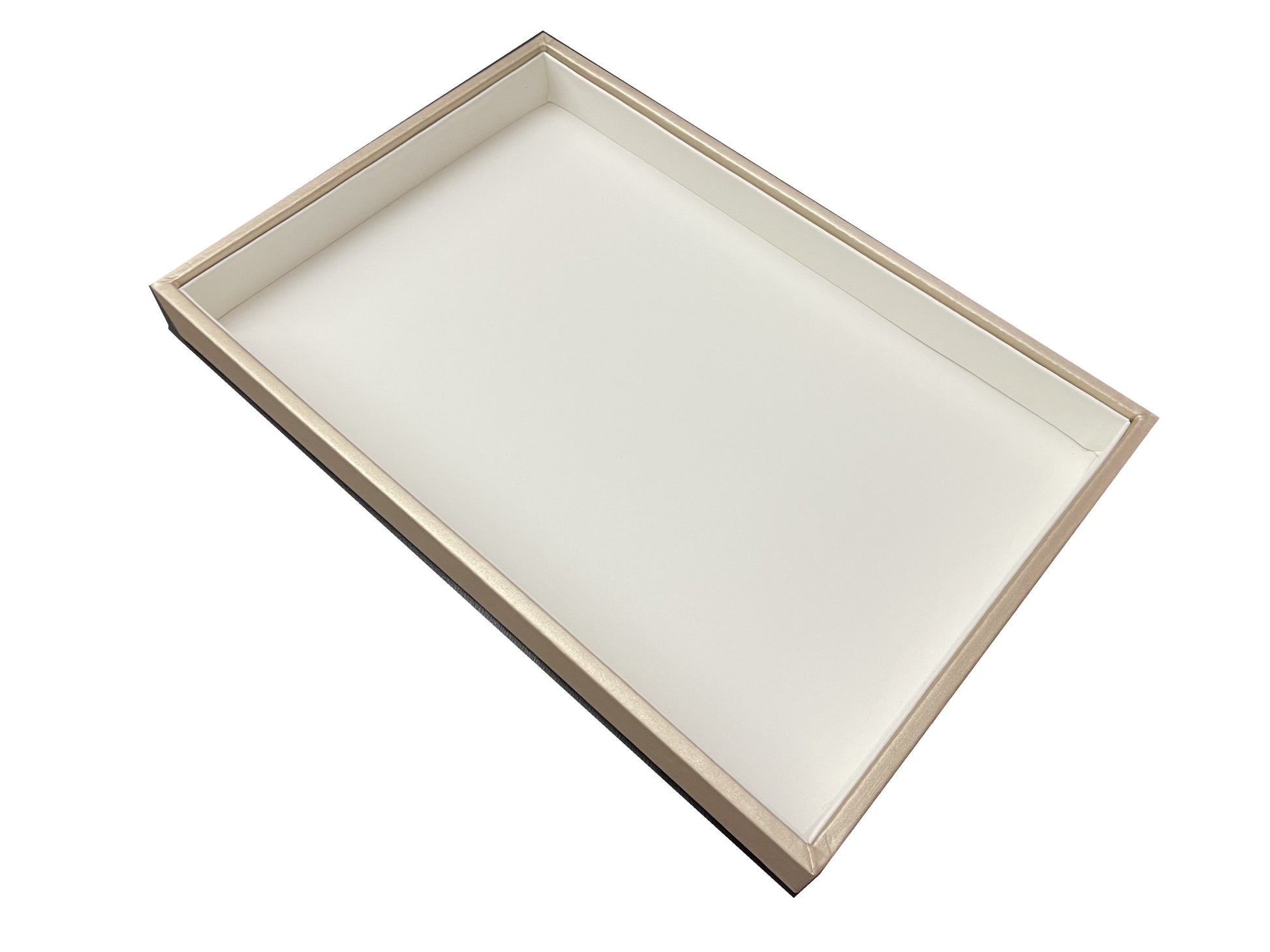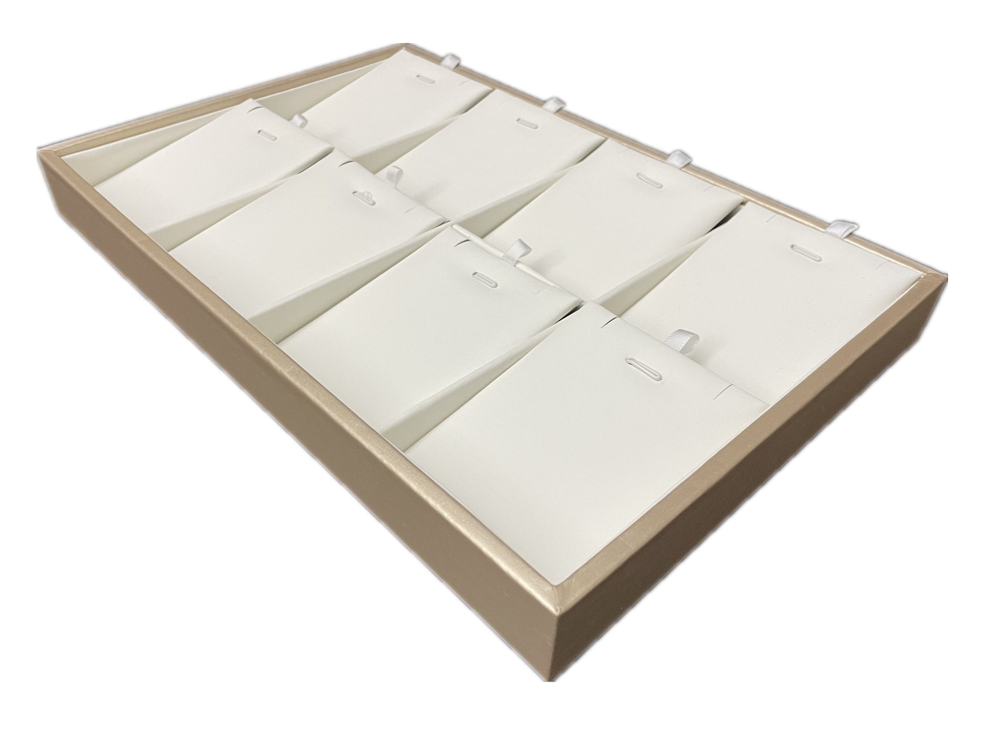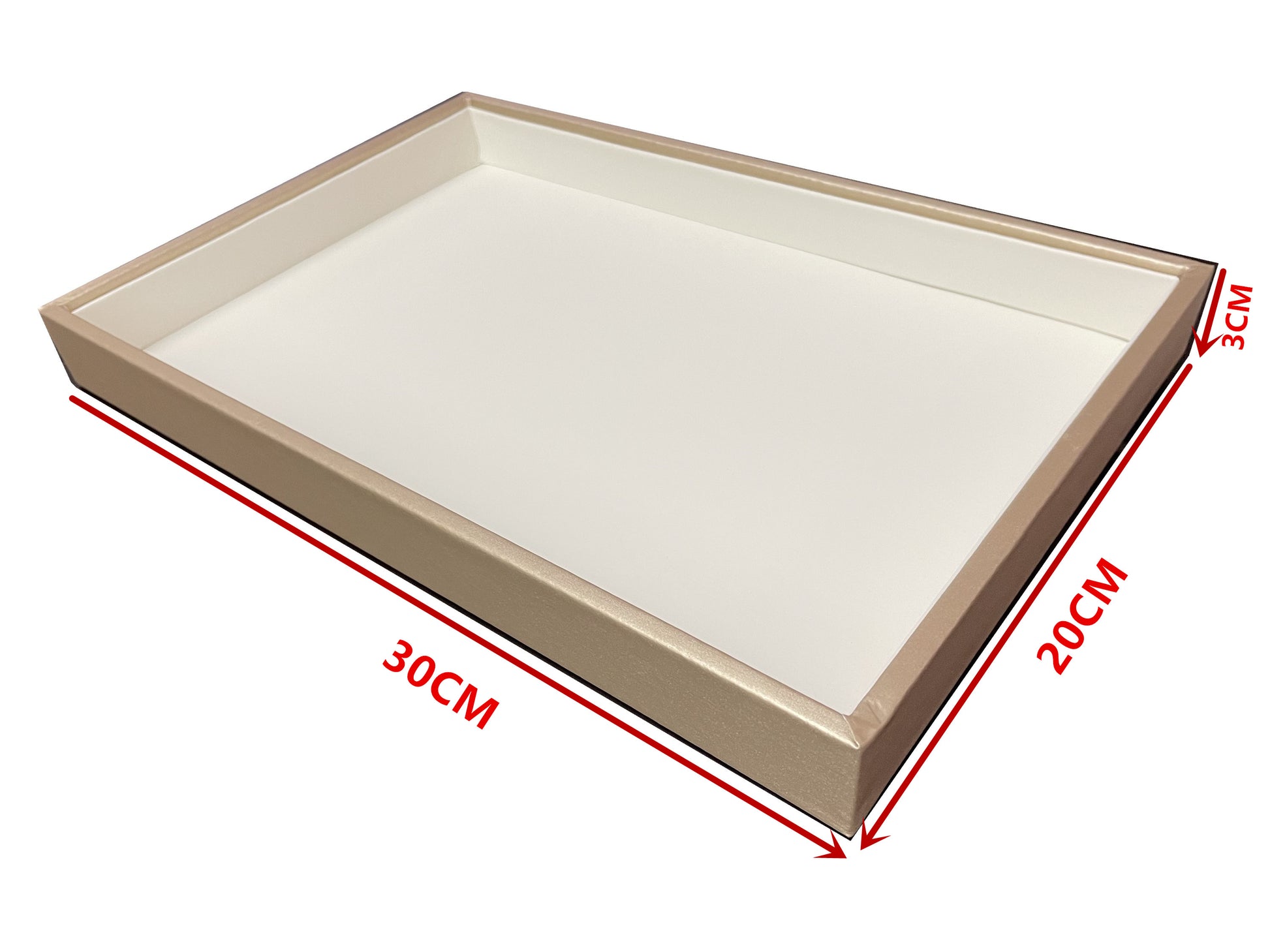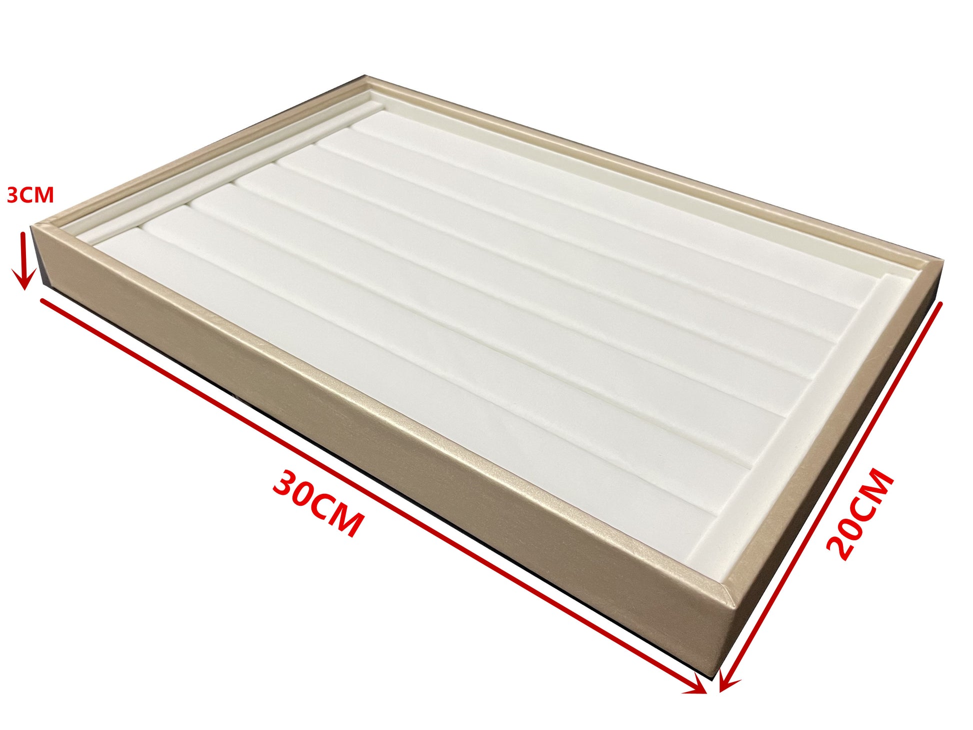 Elegant White and Champagne PU leather Jewelry Ring Pendant Opal Display Trays - Perfect for Organizing, Showcasing, and Storing - 30x20x3cm