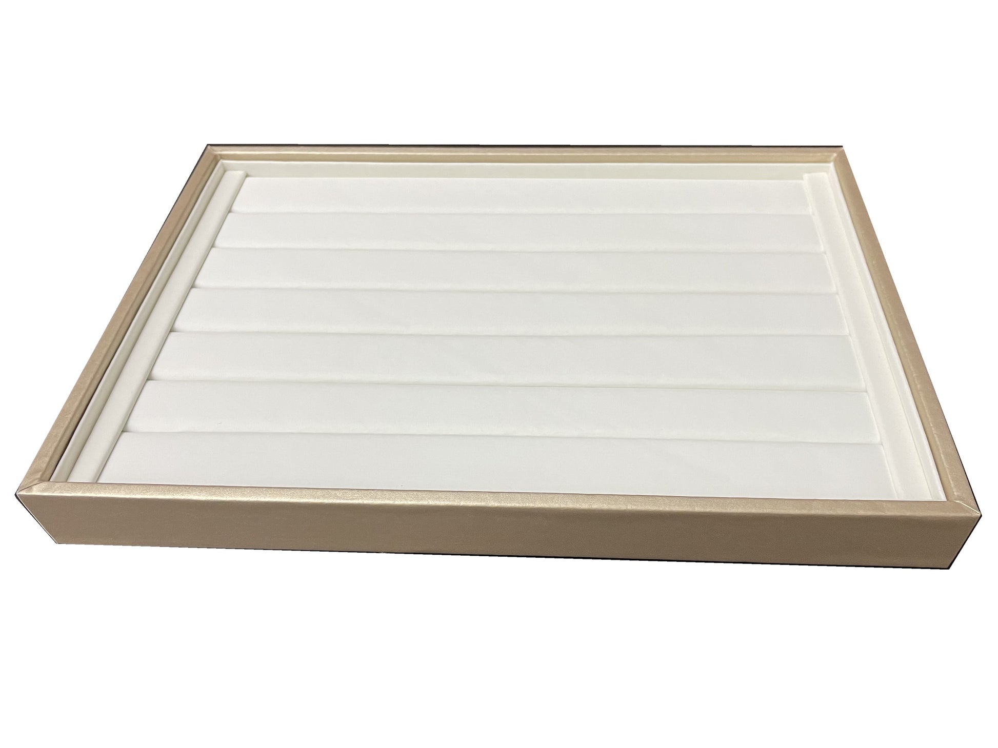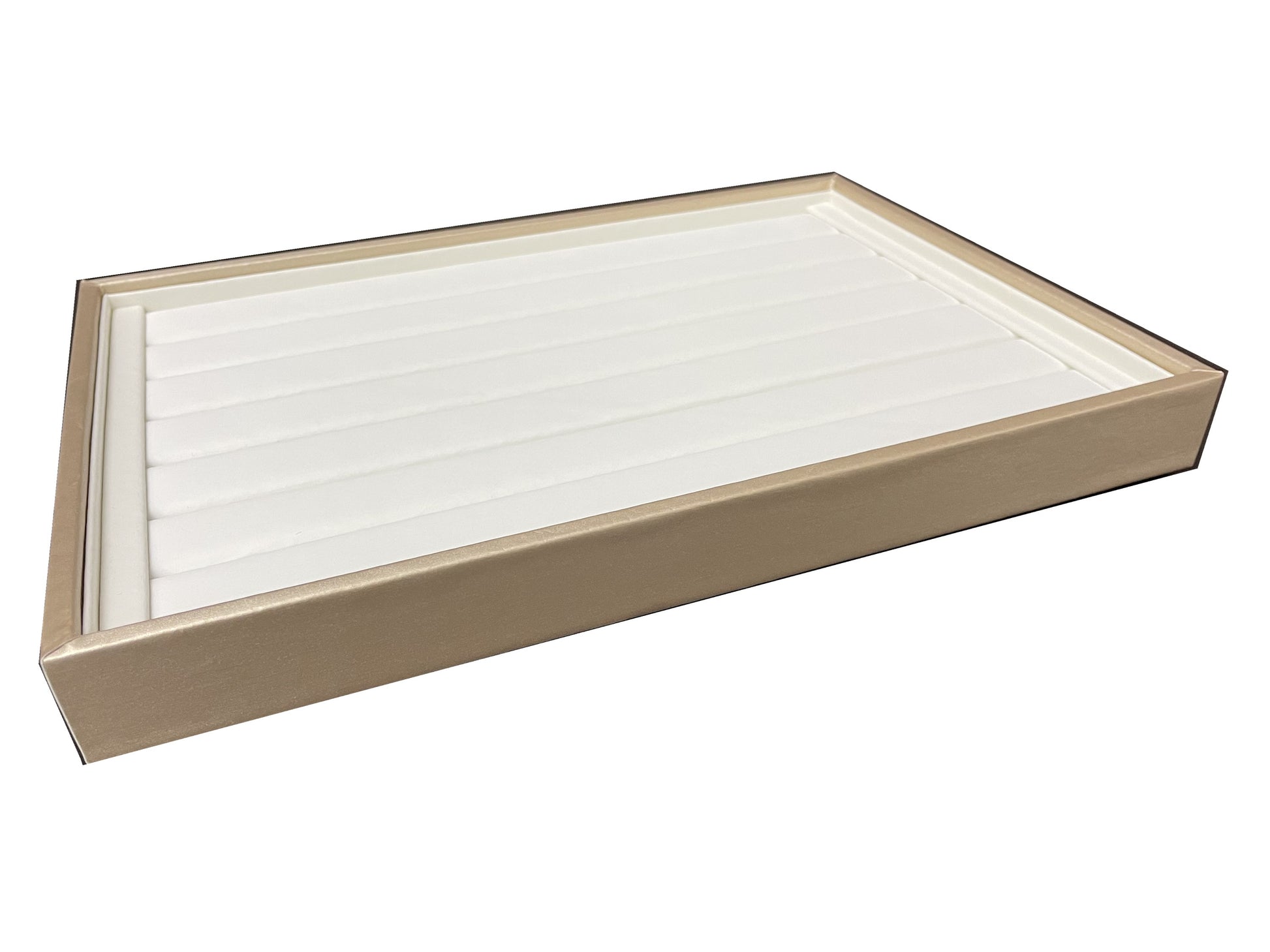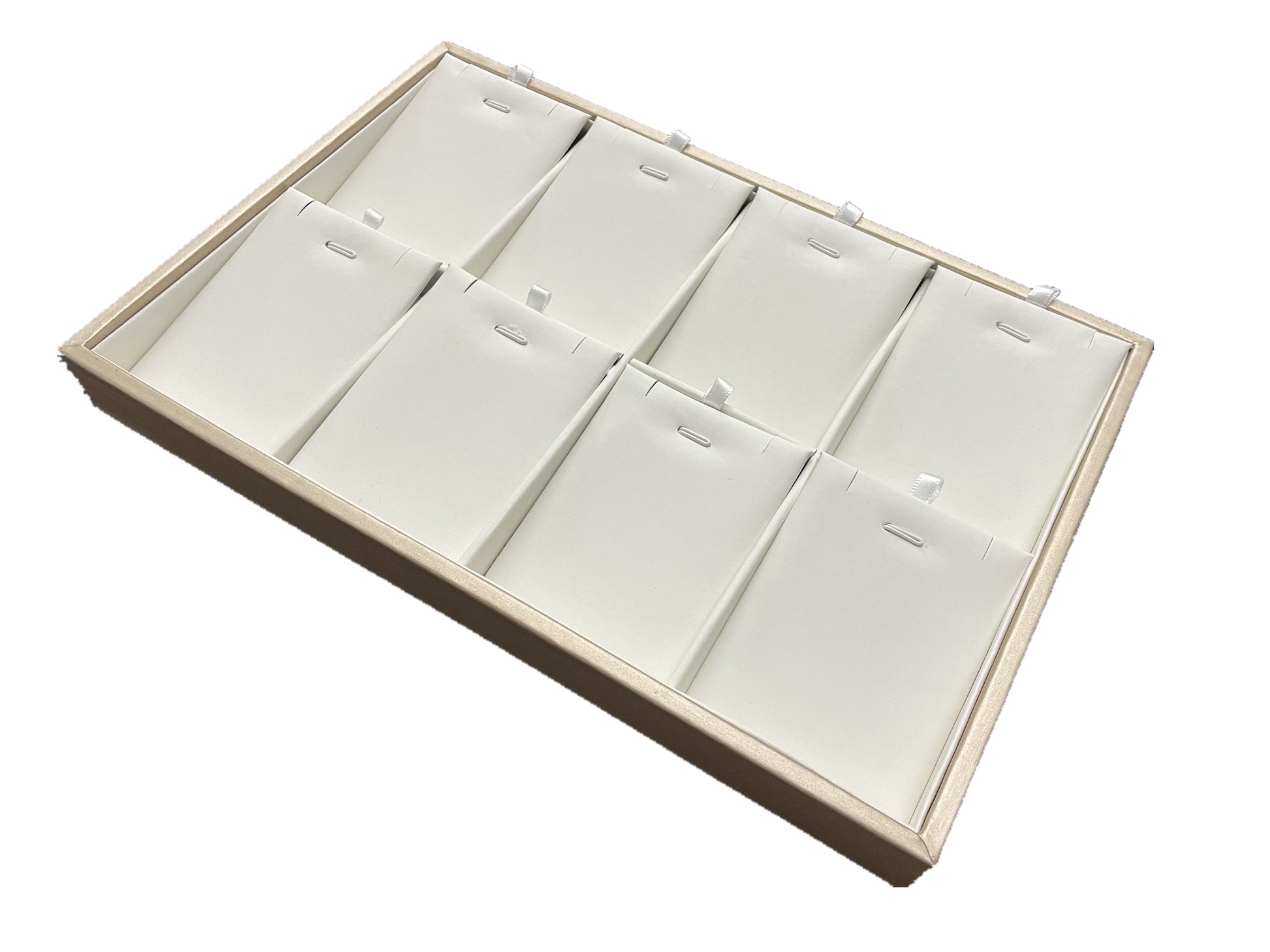 Elegant White and Champagne PU leather Jewelry Ring Pendant Opal Display Trays - Perfect for Organizing, Showcasing, and Storing - 30x20x3cm