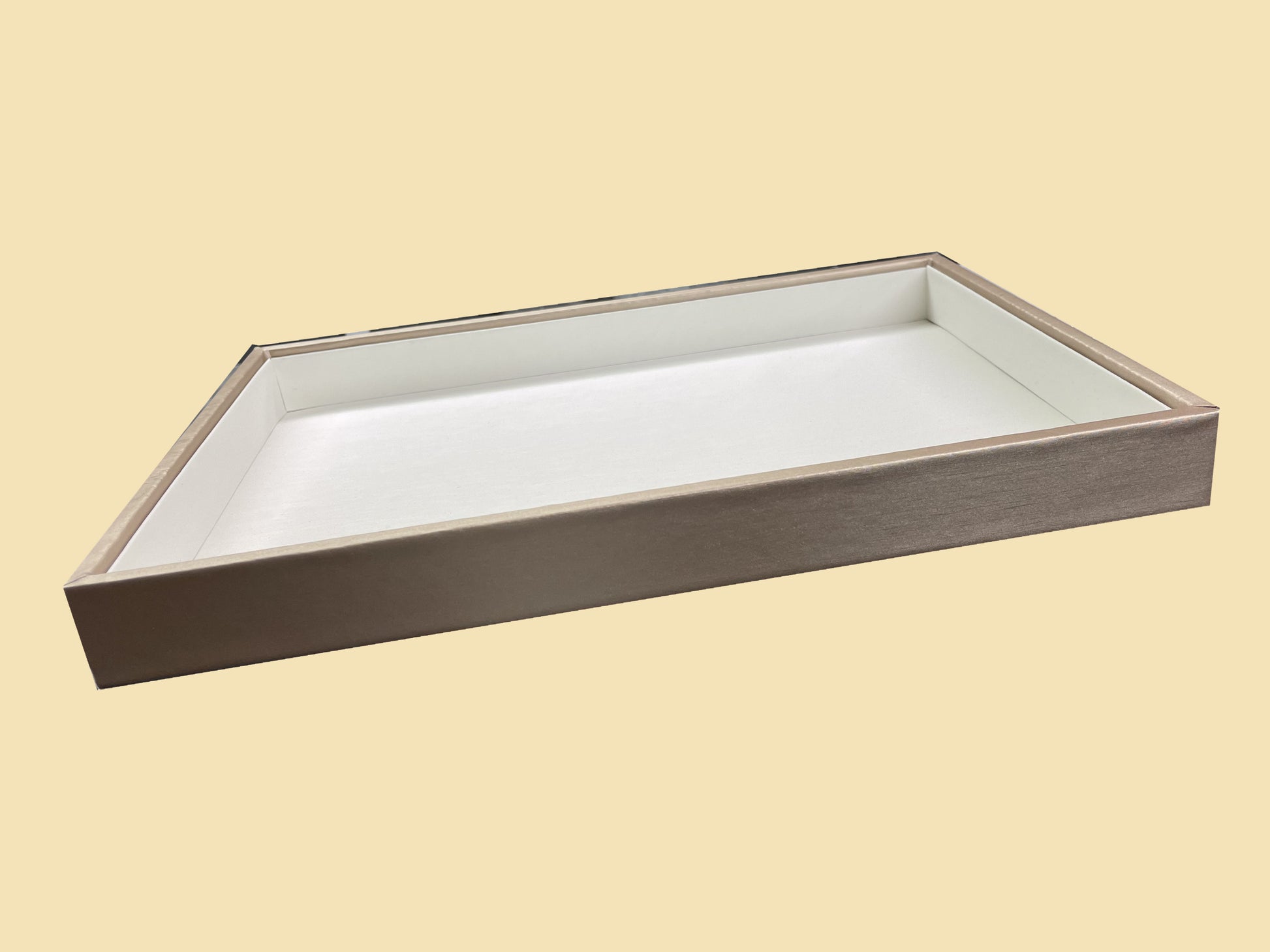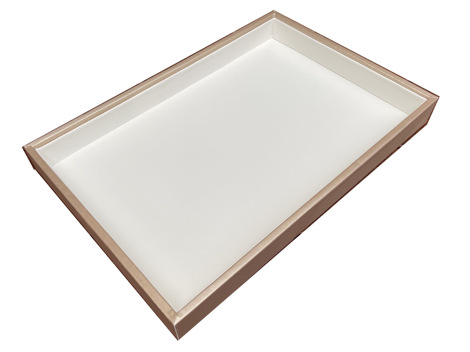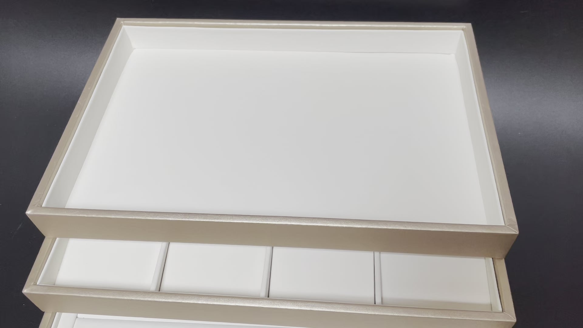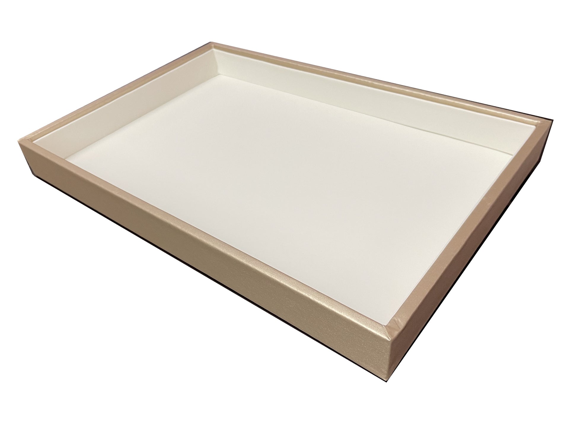 Elegant White and Champagne PU leather Jewelry Ring Pendant Opal Display Trays - Perfect for Organizing, Showcasing, and Storing - 30x20x3cm