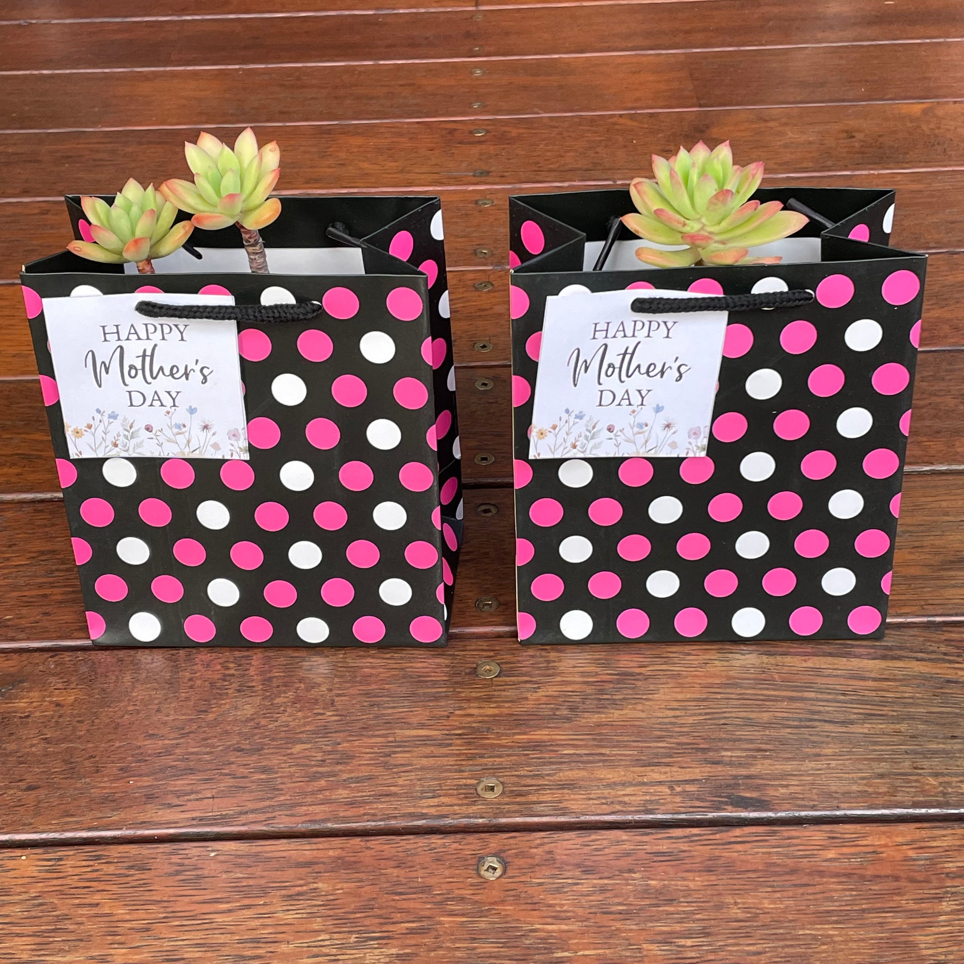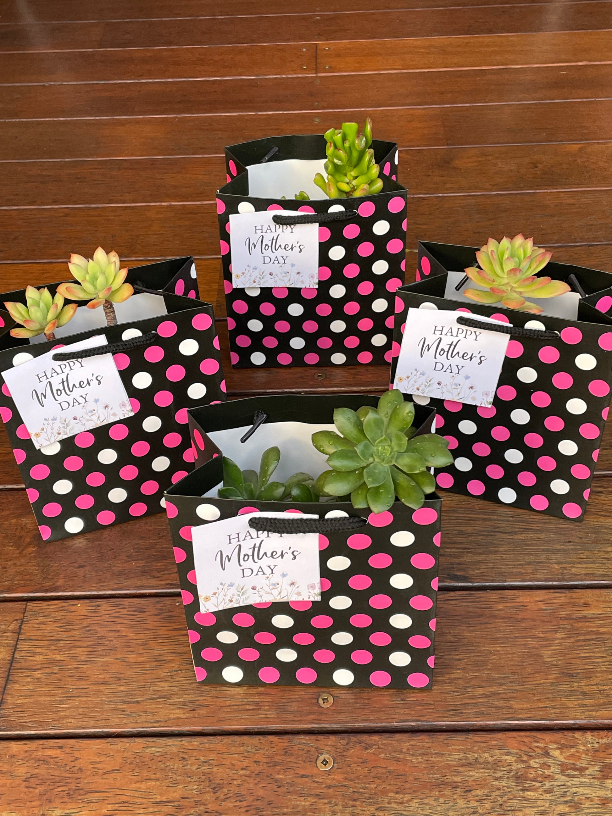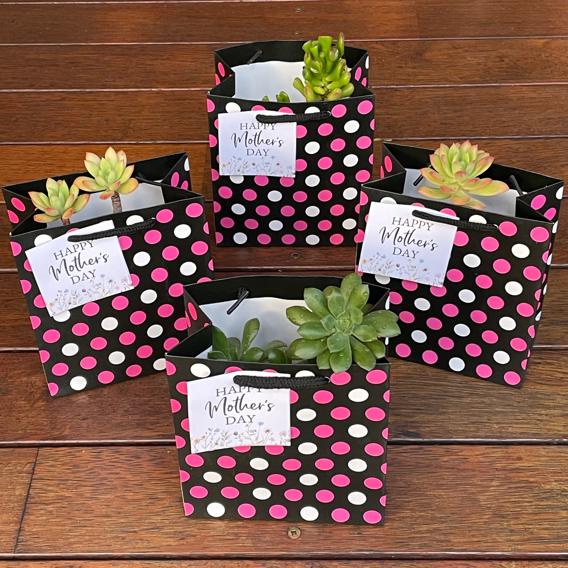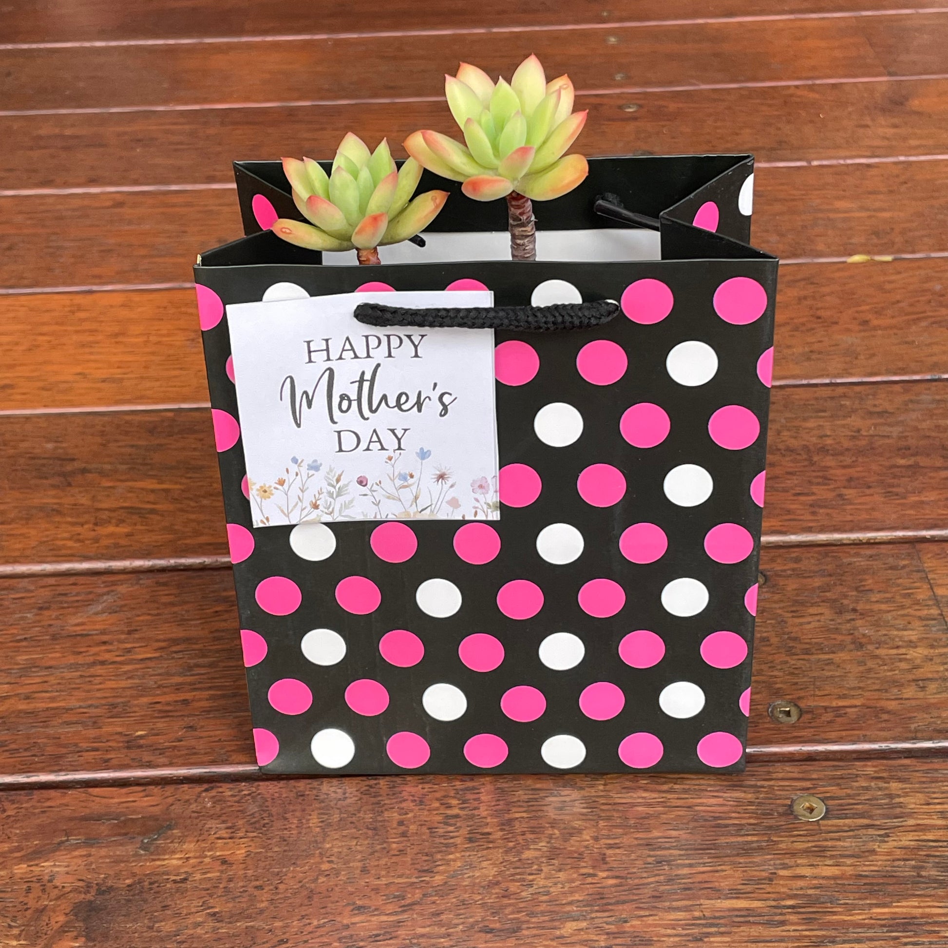 Succulent with "Happy Mother's Day" Sign and Gift Bag
