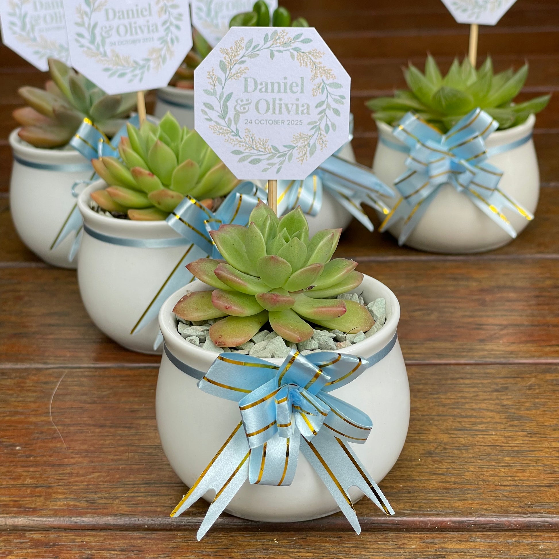 Wedding Succulent Favours – White Ceramic Pot 6.5cm – Eco-Friendly Guest Gifts, Personalised Tags, Gymea NSW Pick Up