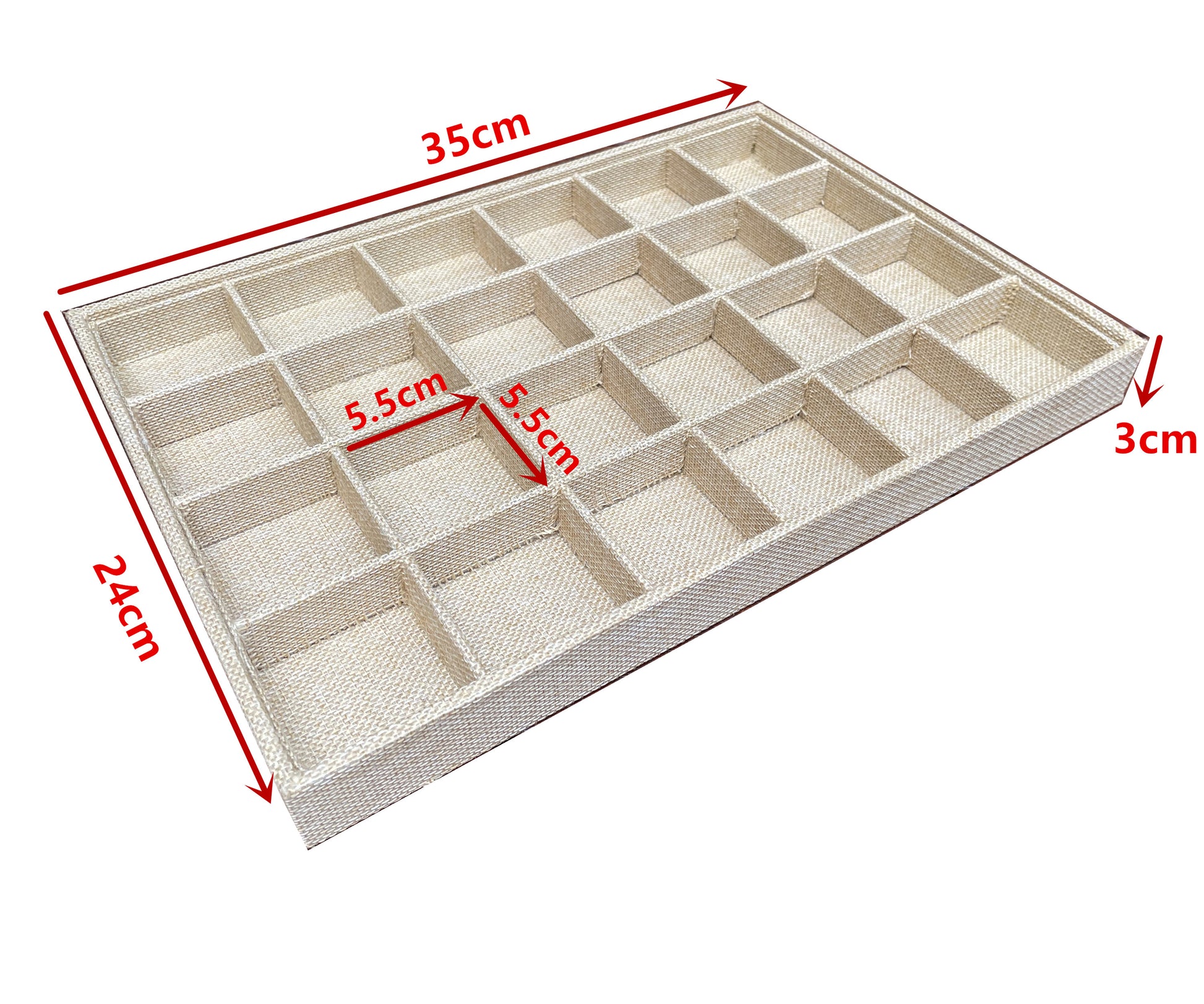 Elegant Linen Jewelry Display Tray - Rings, Earrings, Necklaces, Gems & Pendants - Showcase Your Collection in Style - 35x24x3cm