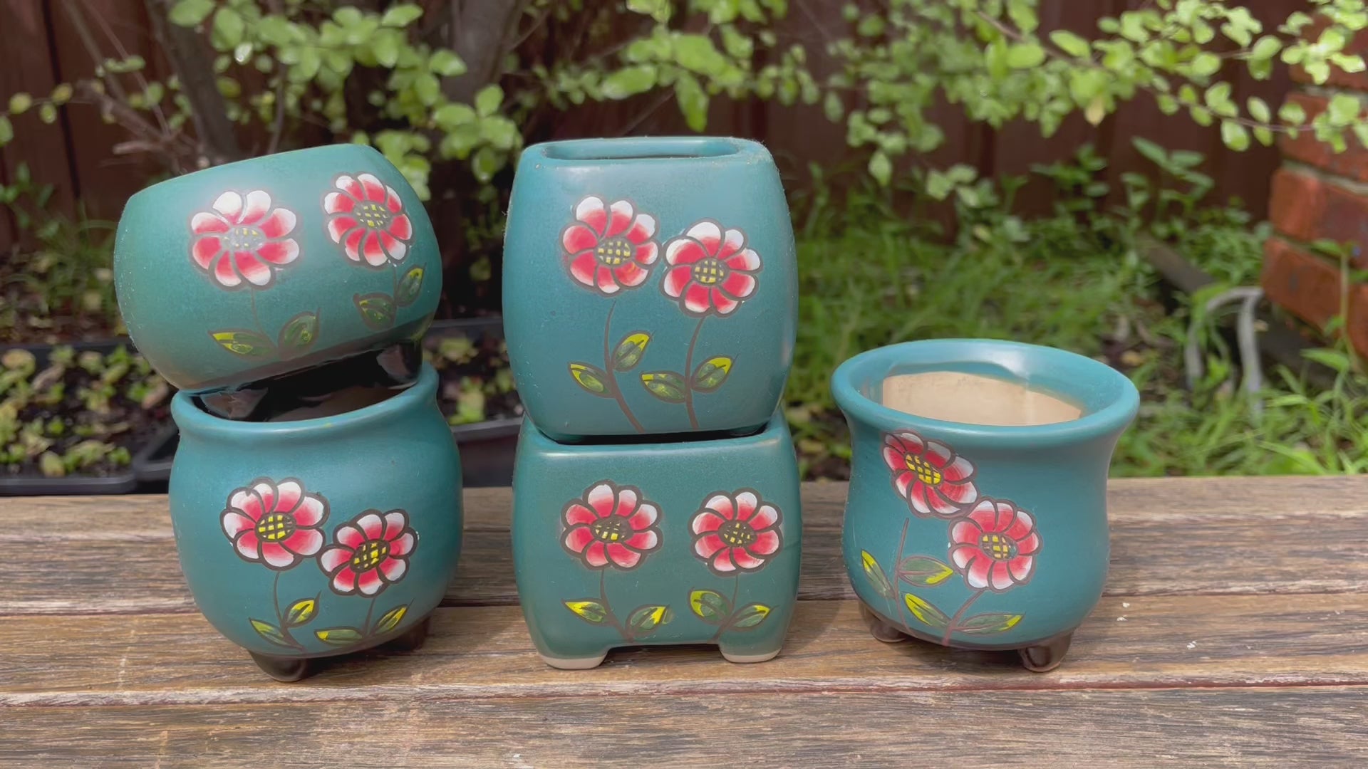 Green Ceramic Pots Floral Pattern Succulent Cactus Pots Draining Hole