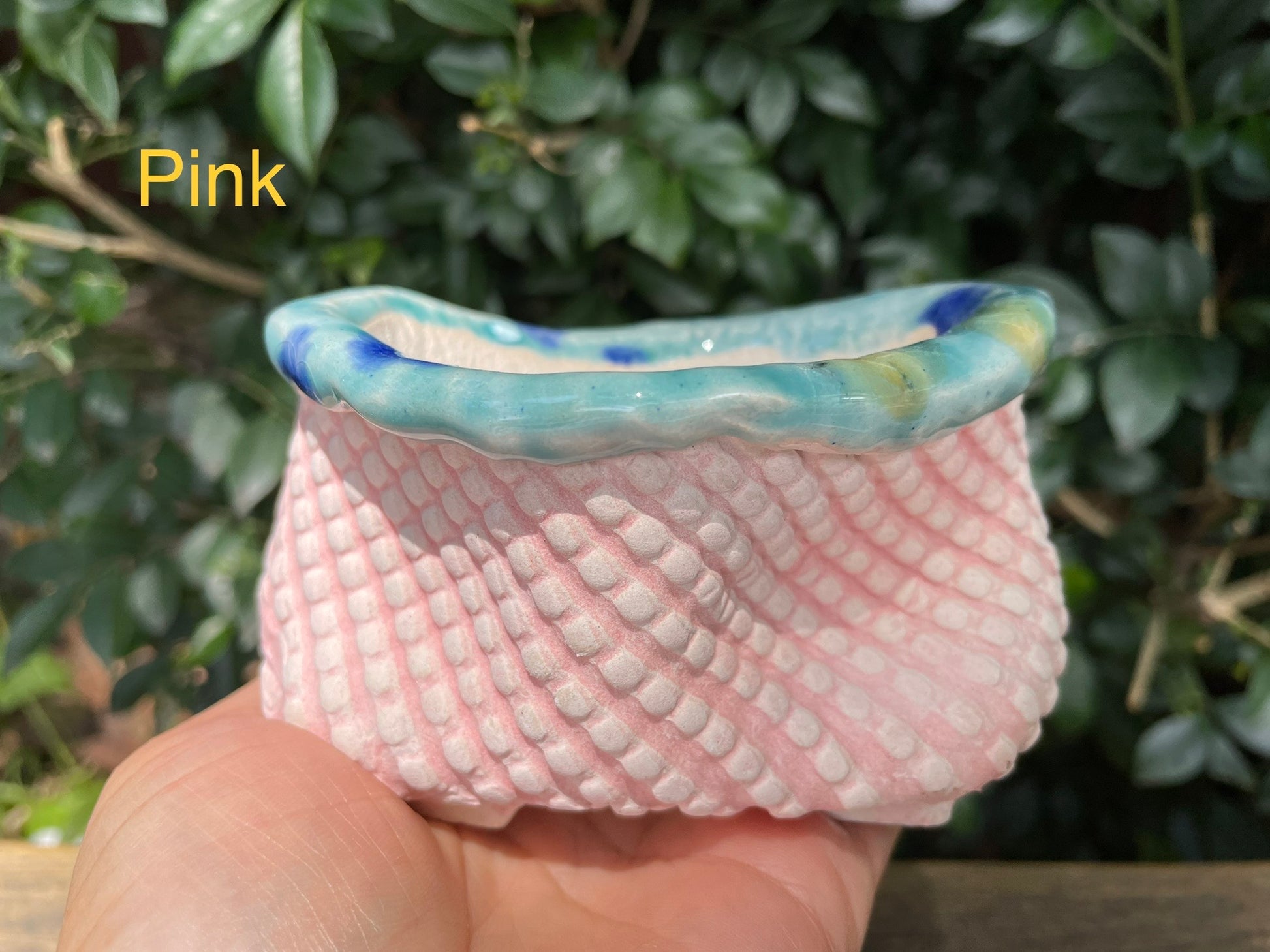 Handmade pot succulent planter pastel light colour draining hole at bottom Home office table decoration gift ideas