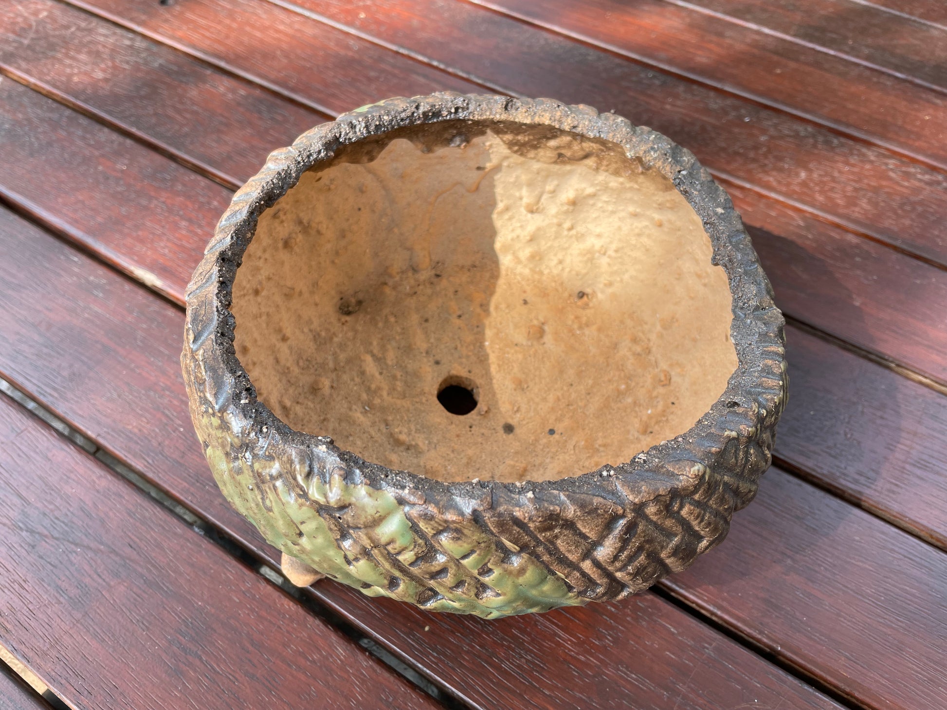 Large-caliber pot made of retro creative handmade breathable explosive grain coarse pottery