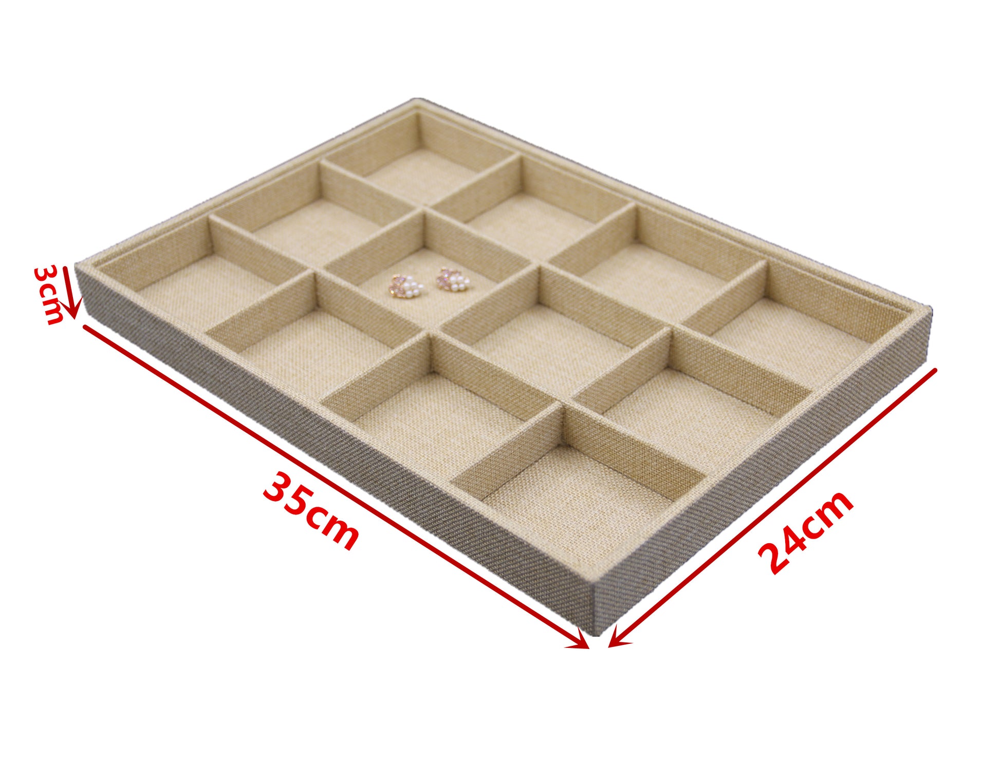 Linen Jewelry Display Tray - Ring Earring Necklace Gem Beads Pedant Display - Reliable Showcase Your Jewelry Collection - 35(L)x24(W)x3(H)CM