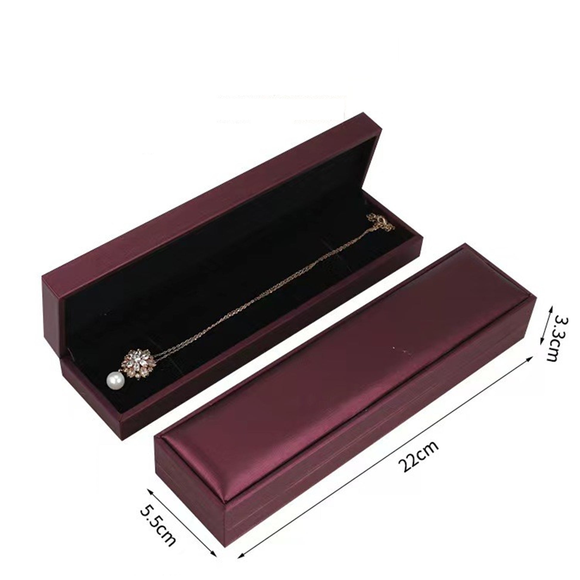 - Necklace Box: 22cm(L) × 5.5cm(W) × 3.3cm(H) / 163g
