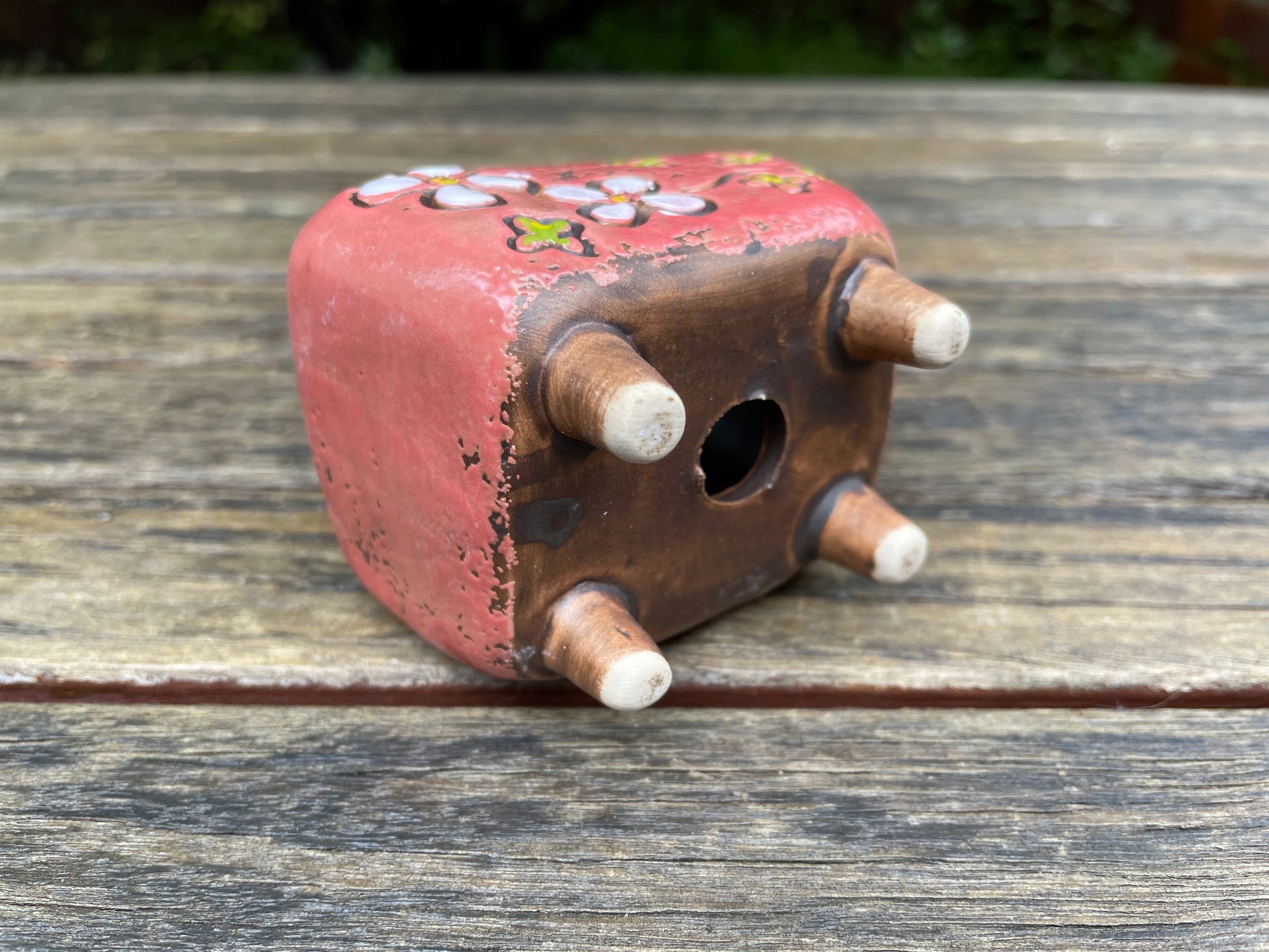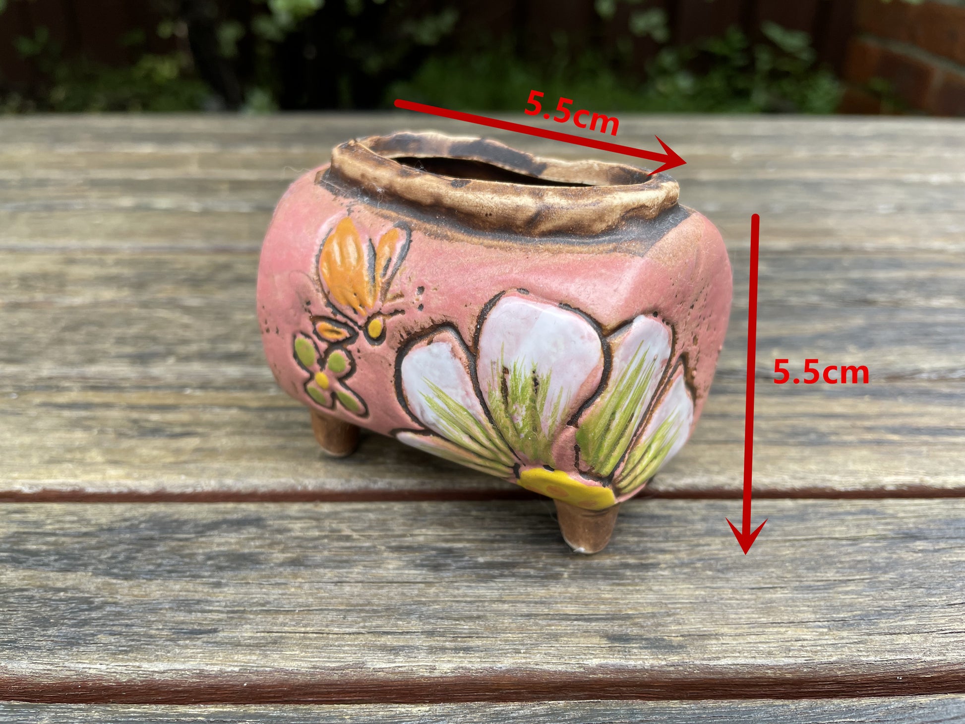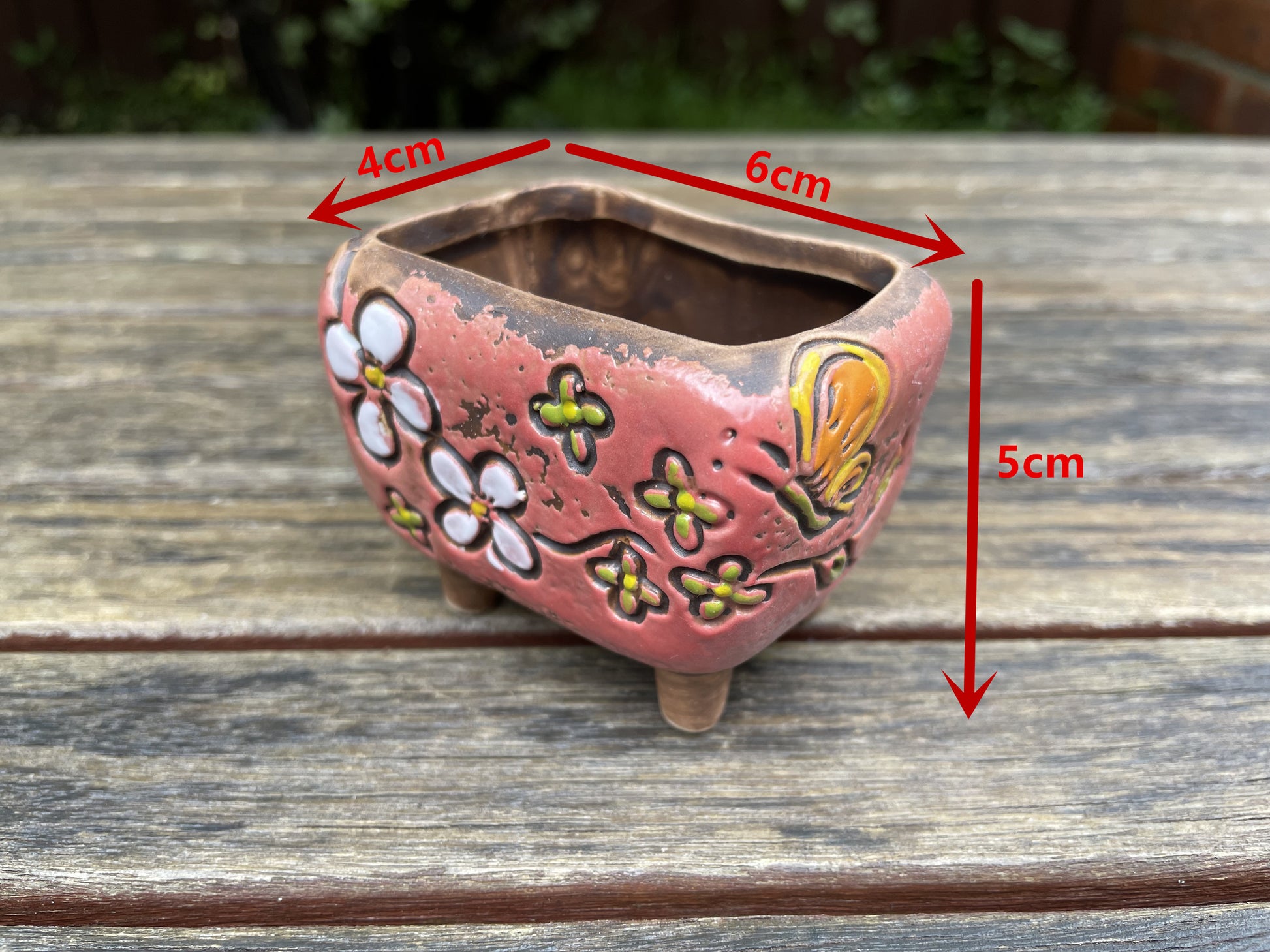 7x Mini Pots Pink Handmade Glazed Ceramic Succulent Cactus Planter Draining With Feet
