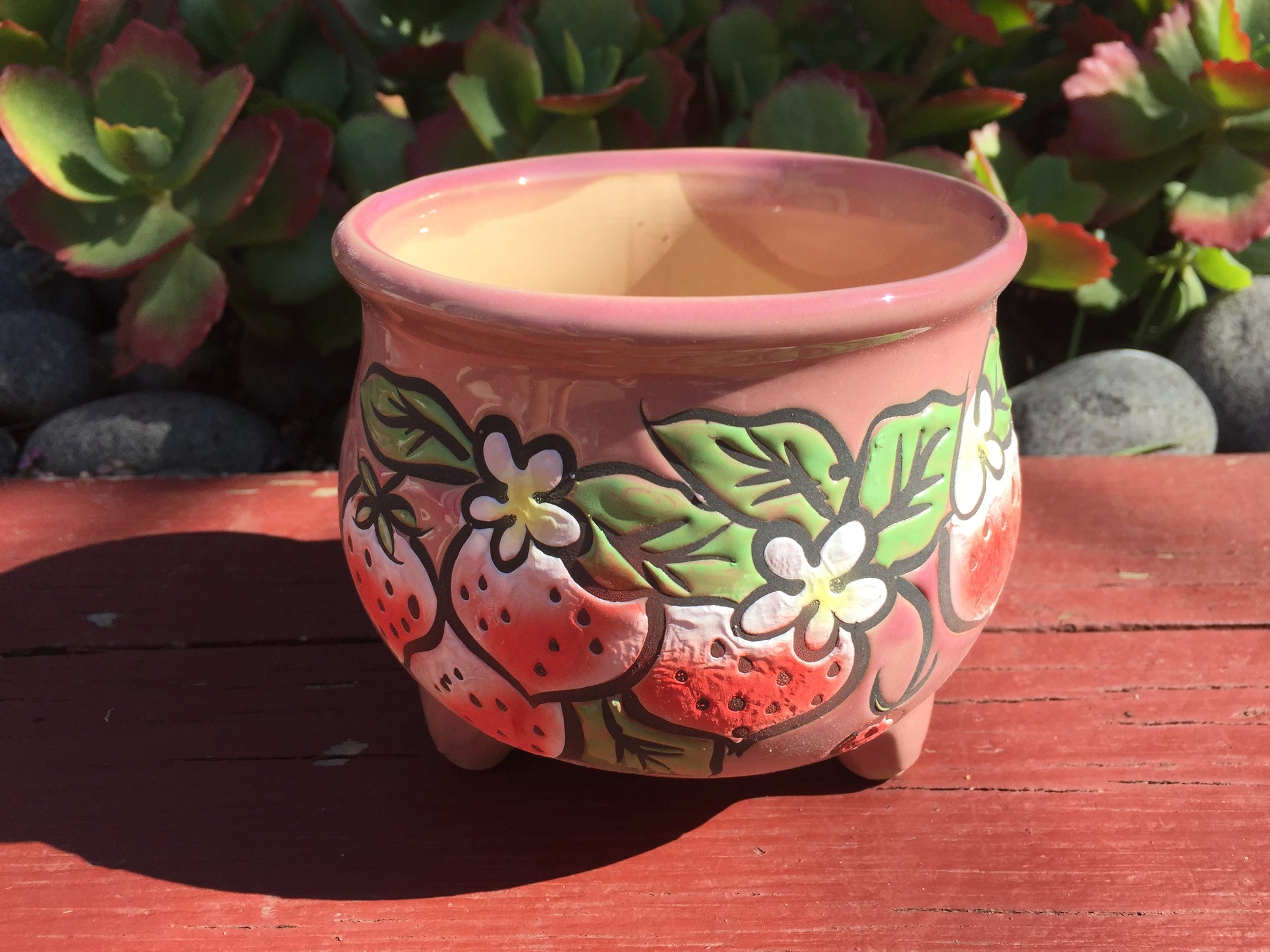 These ceramic pots, glazed with strawberry pattern, 4 different colour. Can be planted succulents, cactus or small plants, will decorate your home or office. There is leaking hole at the bottom, good for the plant growing.