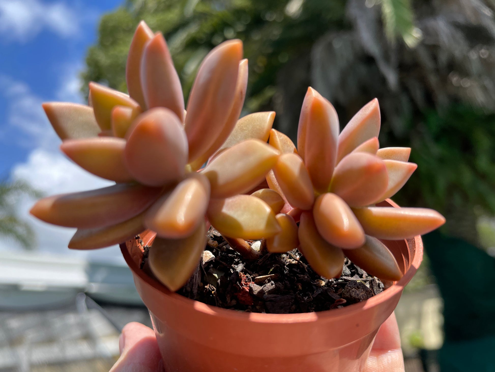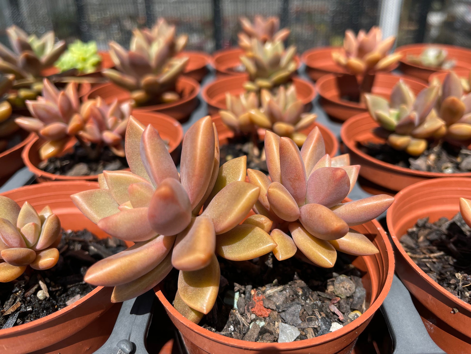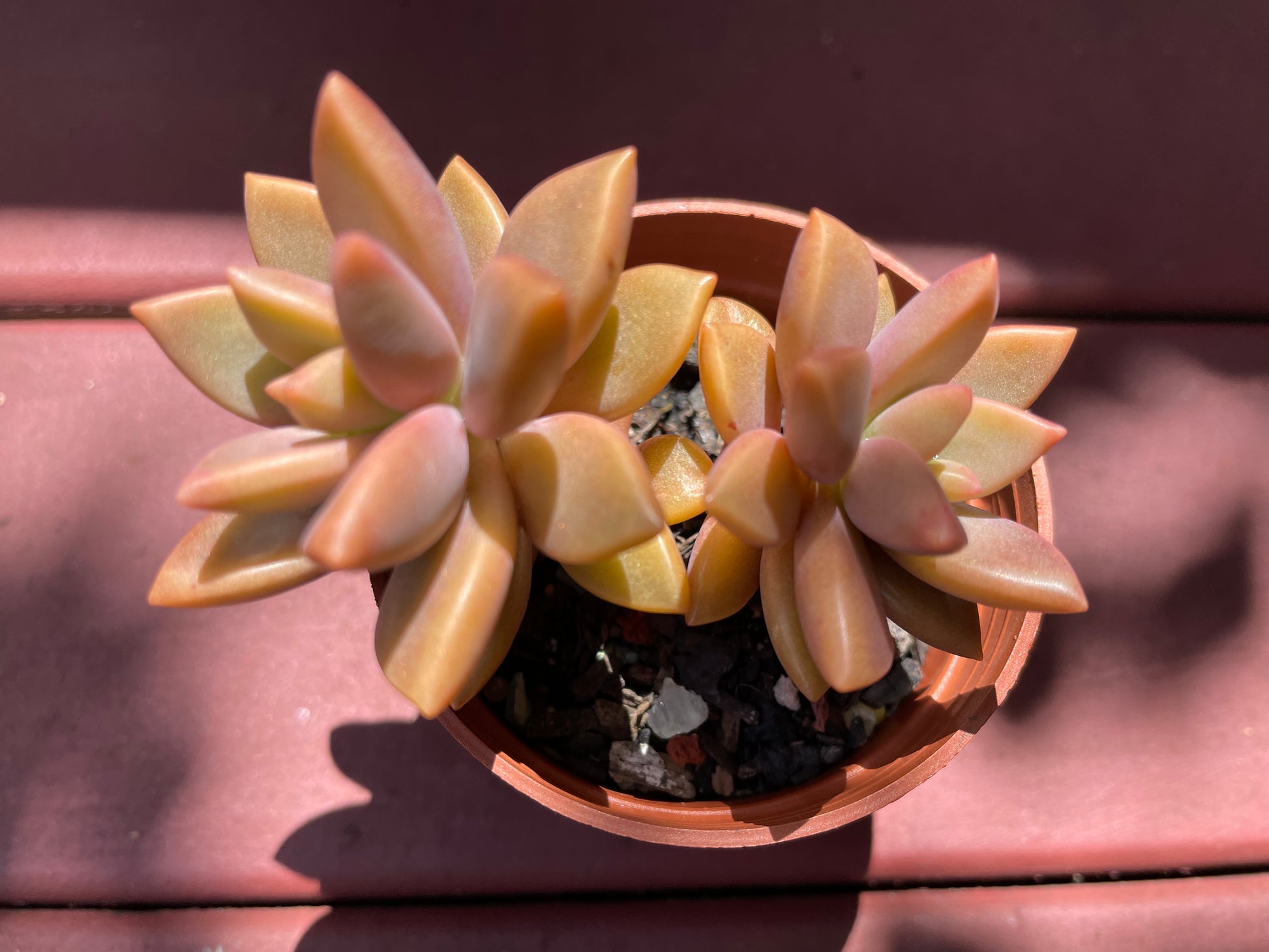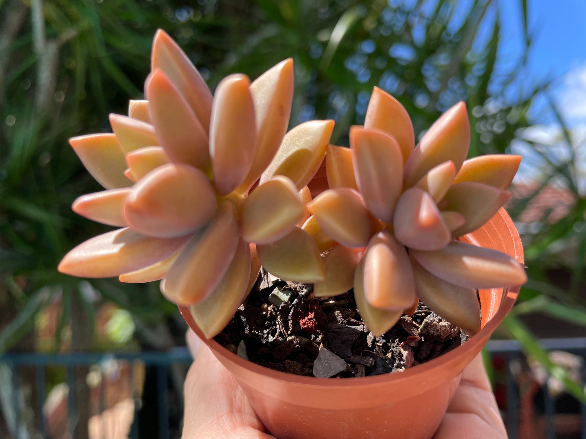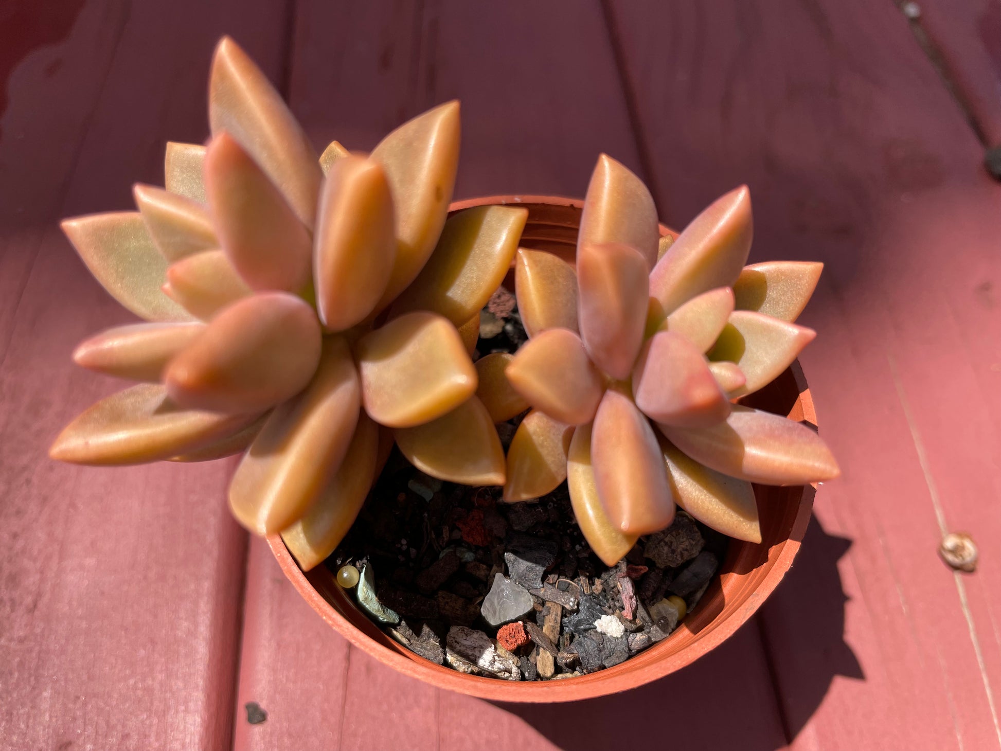 Position: Full sun. Colour changes to orange/pink when grown in full sun.