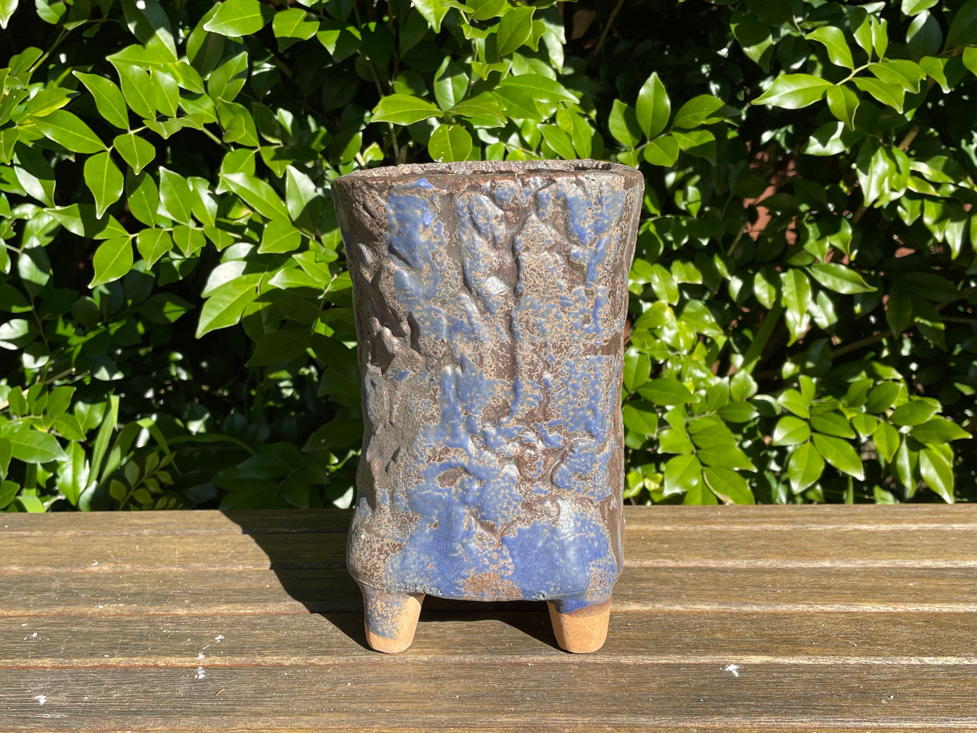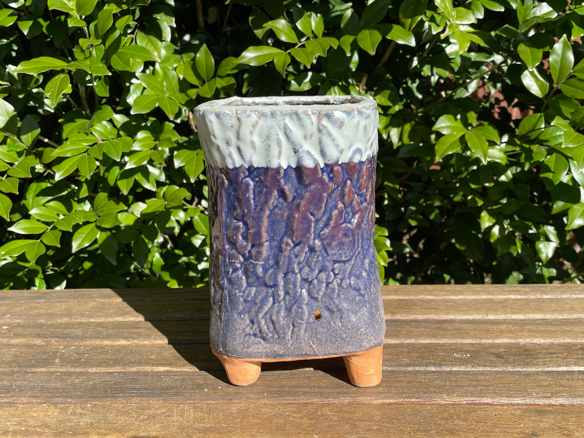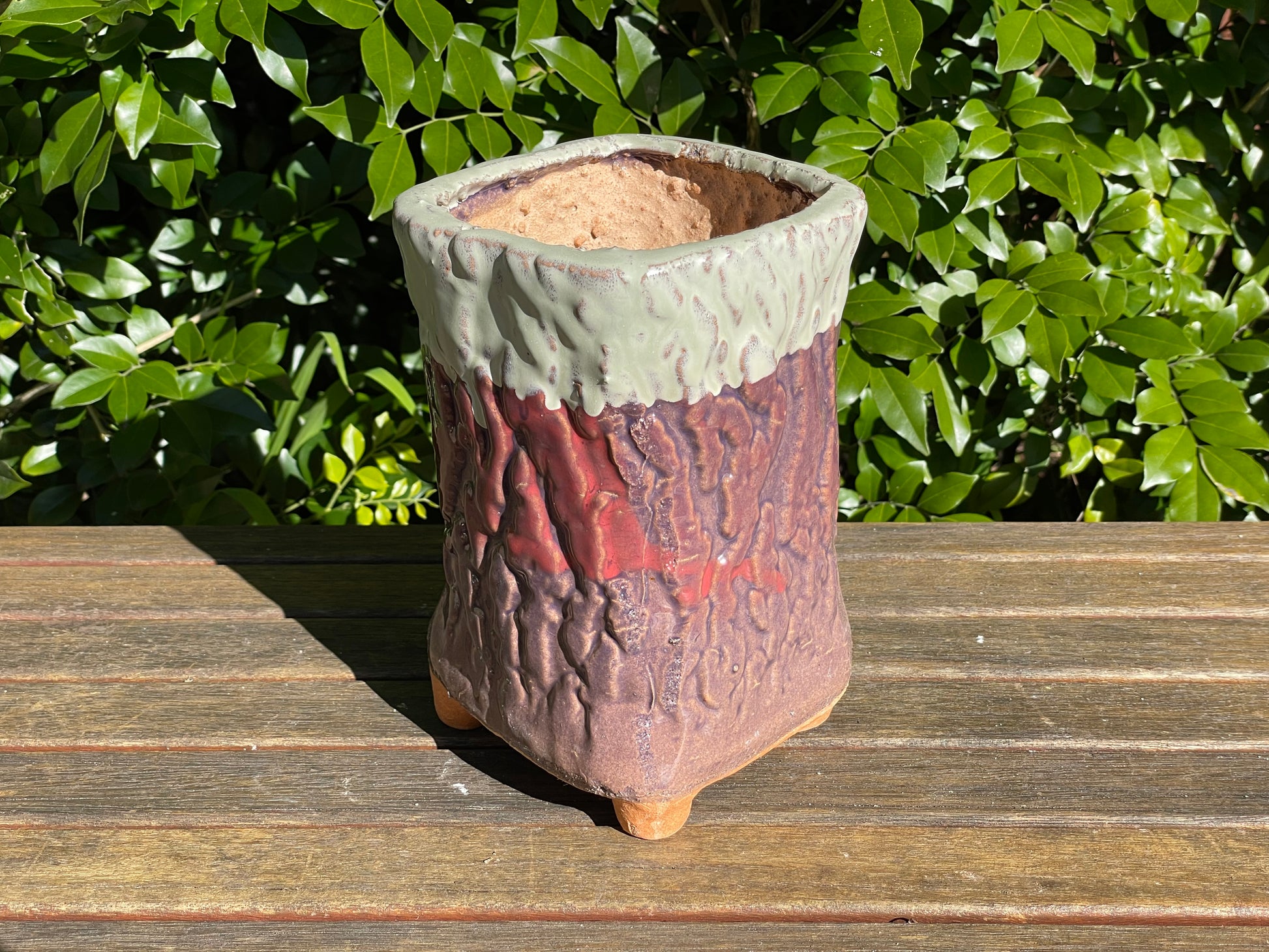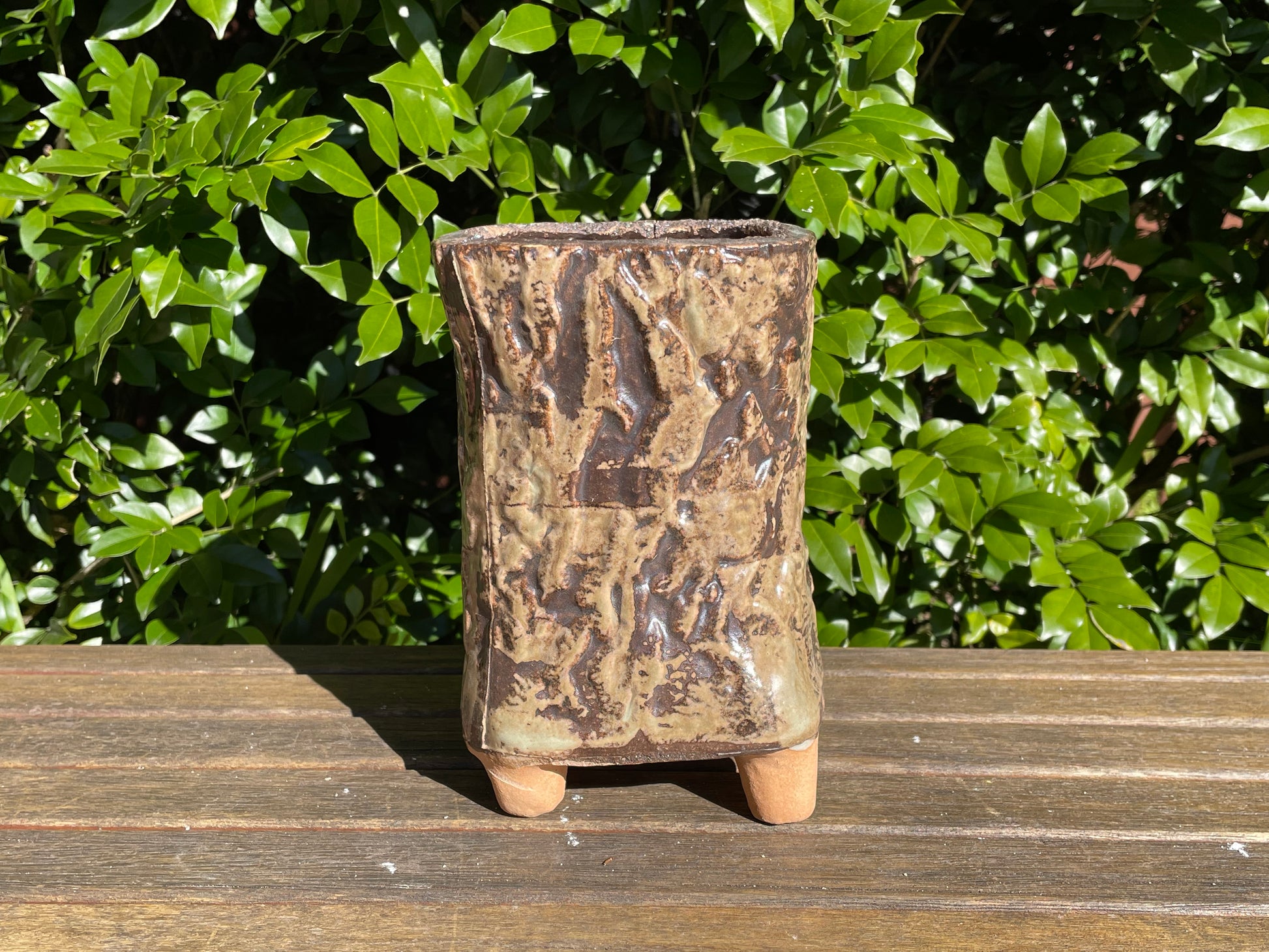Succulent ceramic pot tree bark pattern clay mixed maifan stone breathable draining hole feet 18cm height