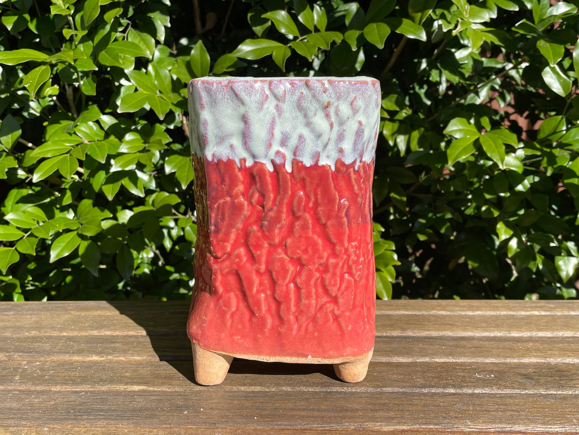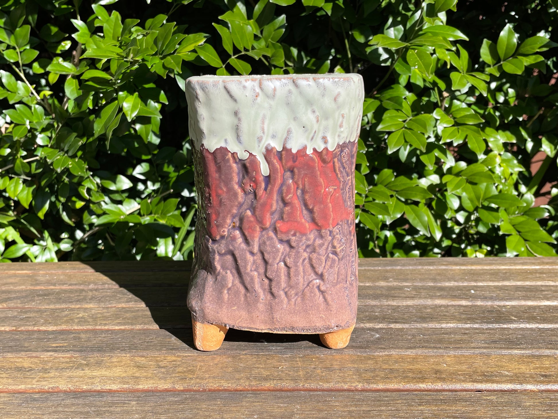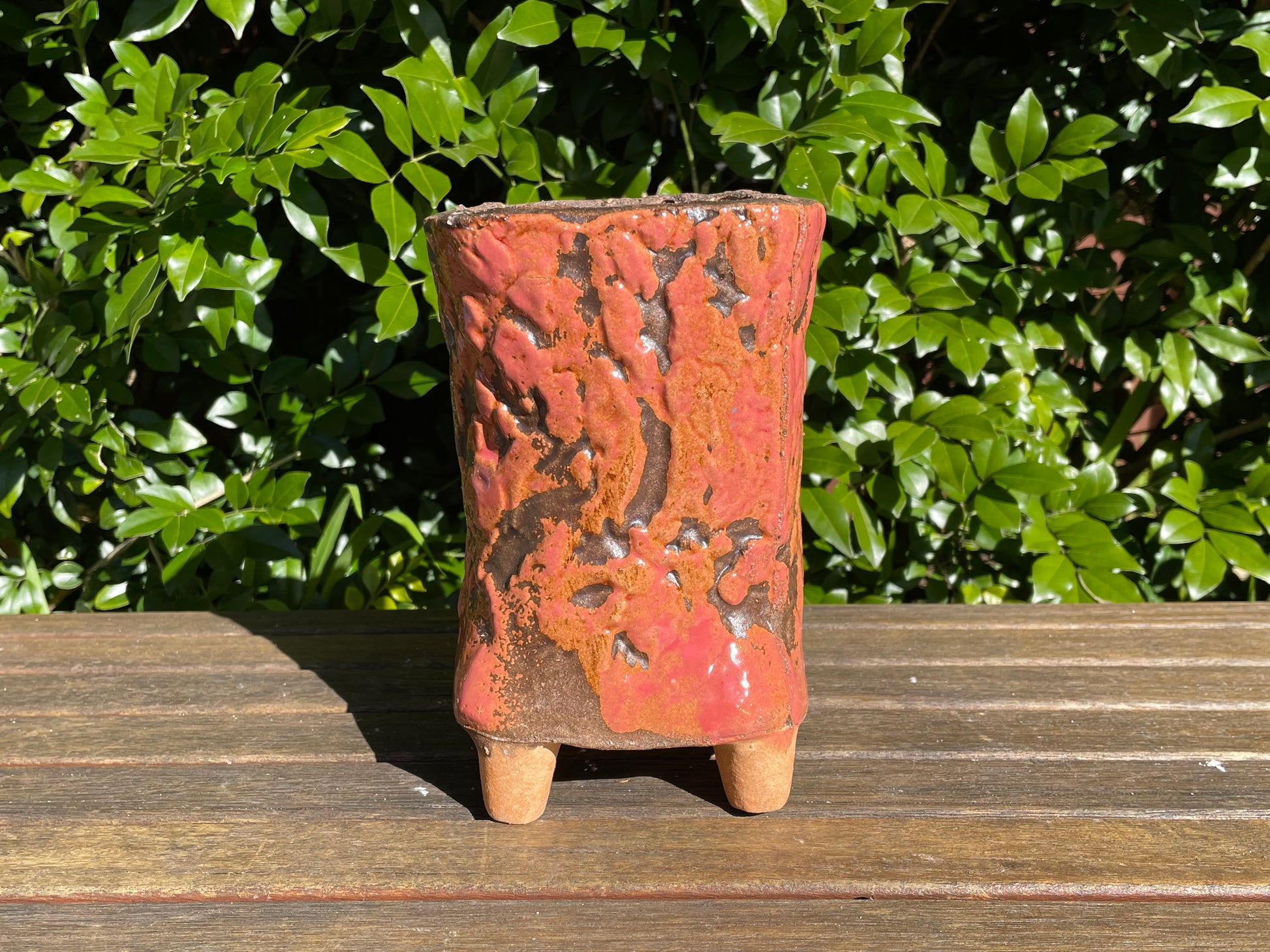 Succulent ceramic pot tree bark pattern clay mixed maifan stone breathable draining hole feet 18cm height