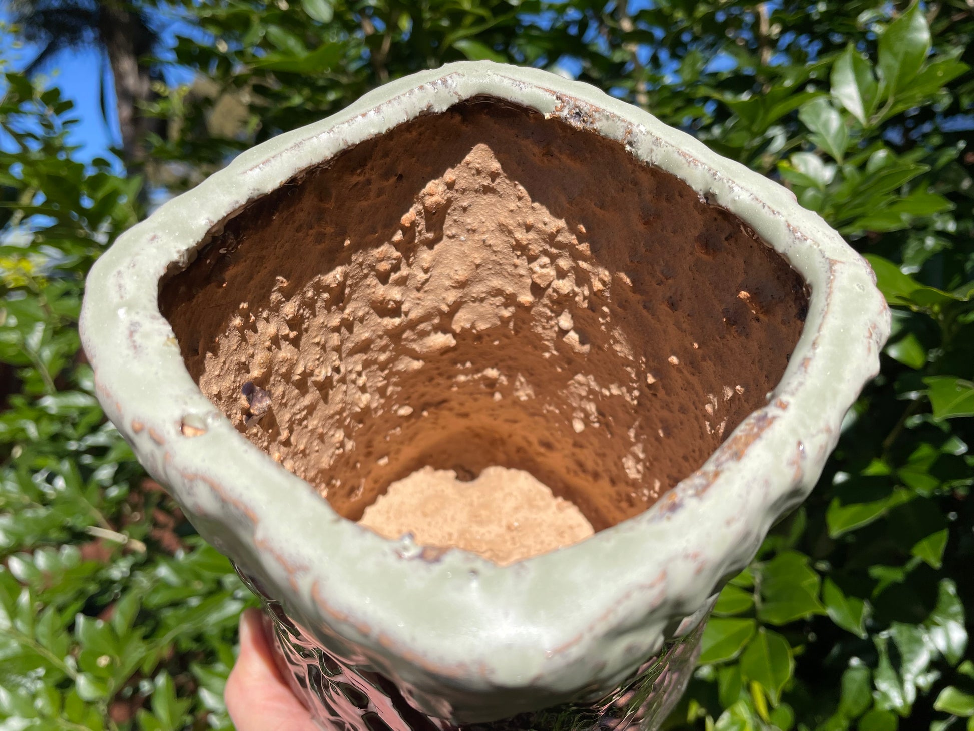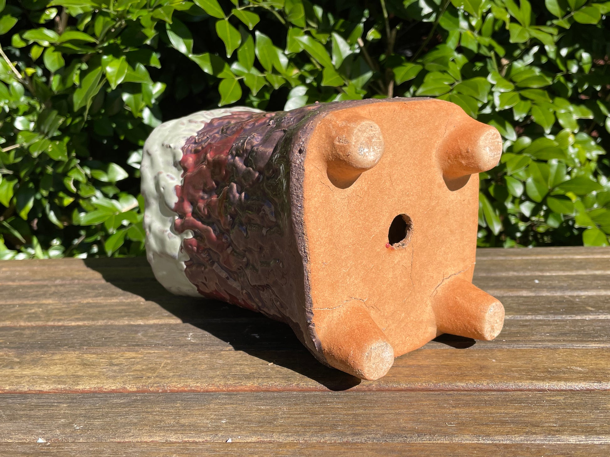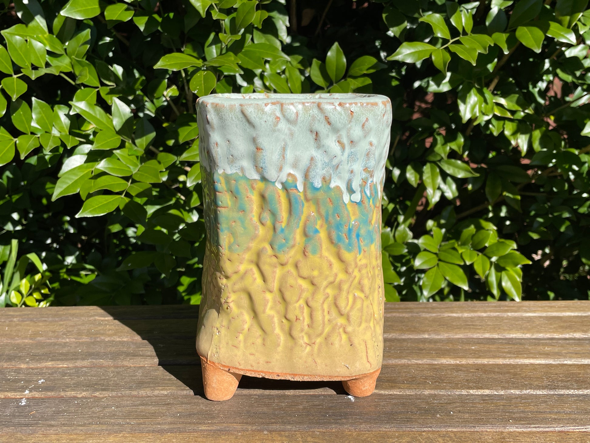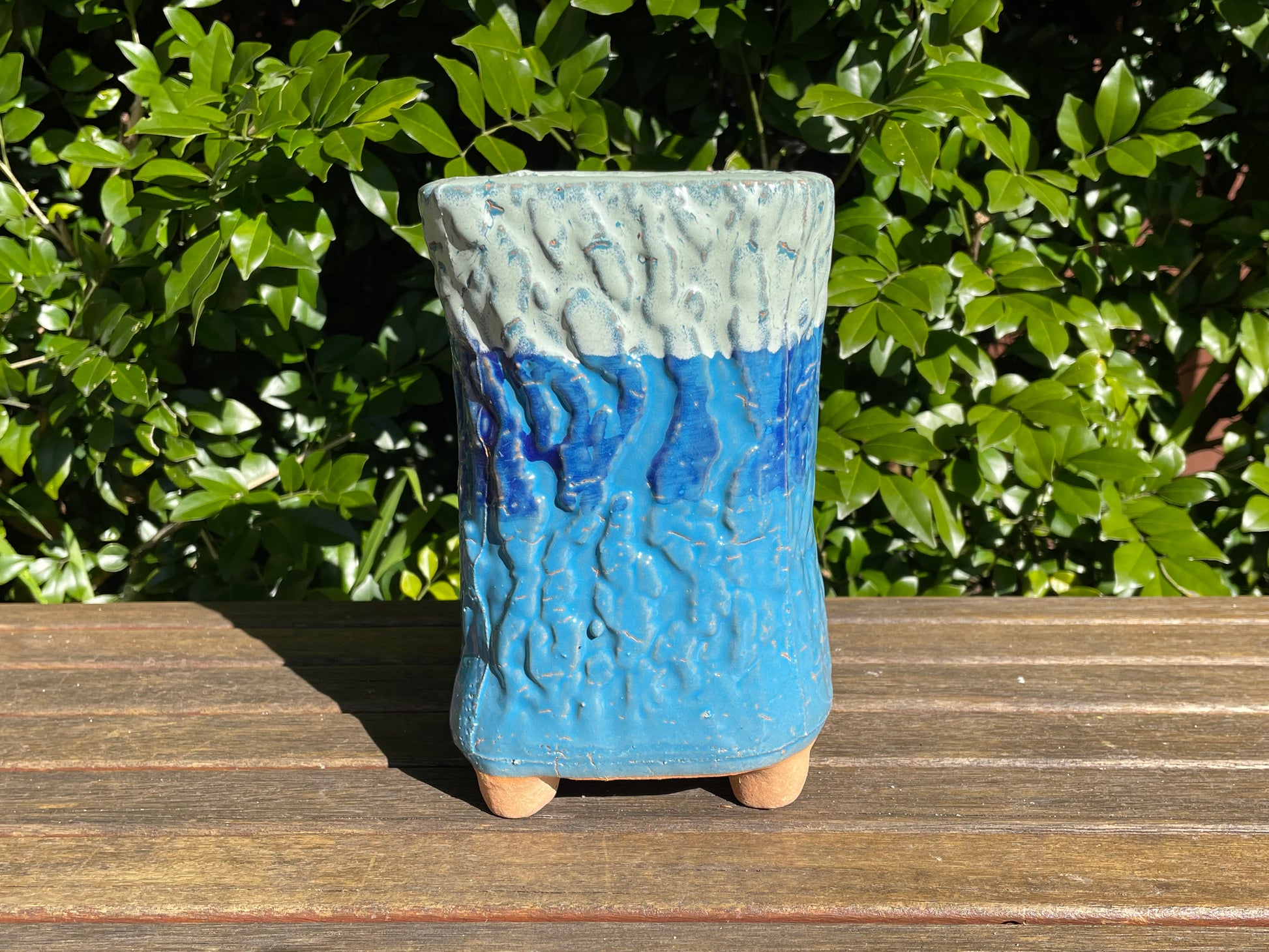 Succulent ceramic pot tree bark pattern clay mixed maifan stone breathable draining hole feet 18cm height