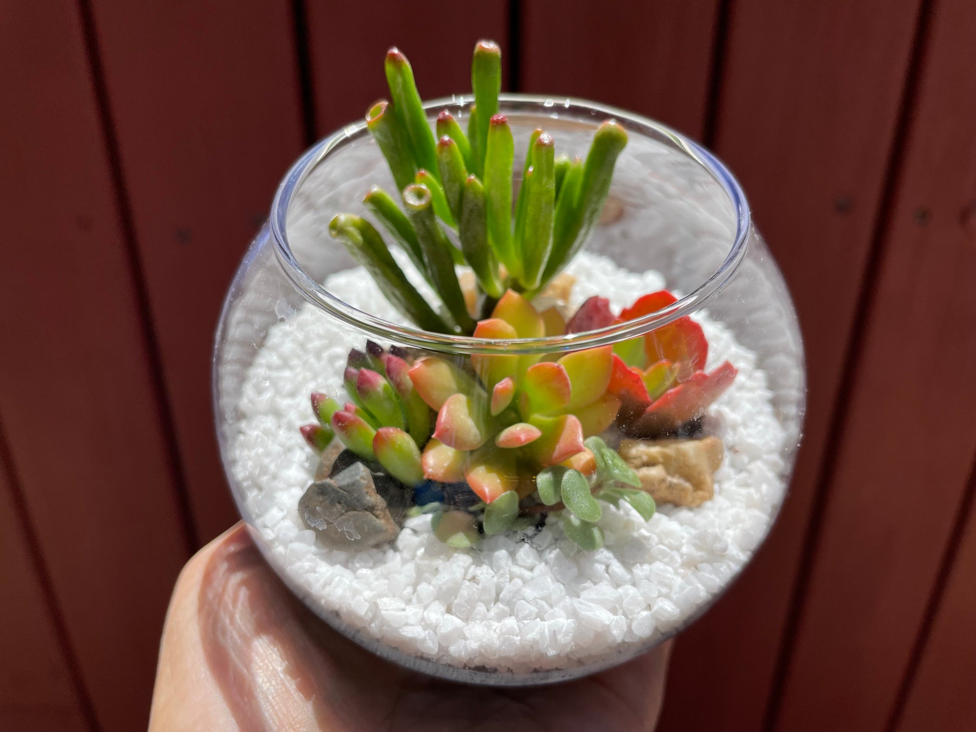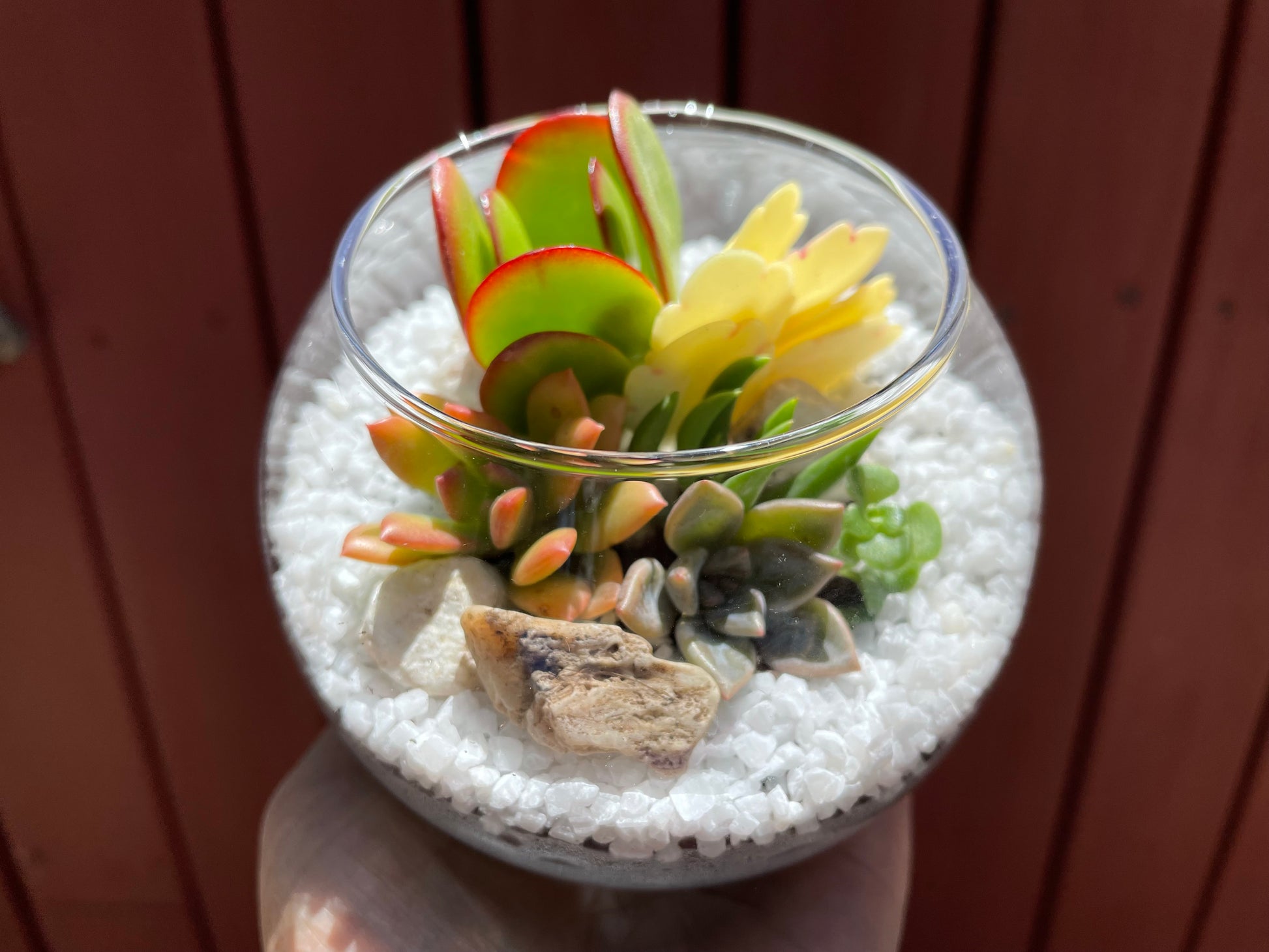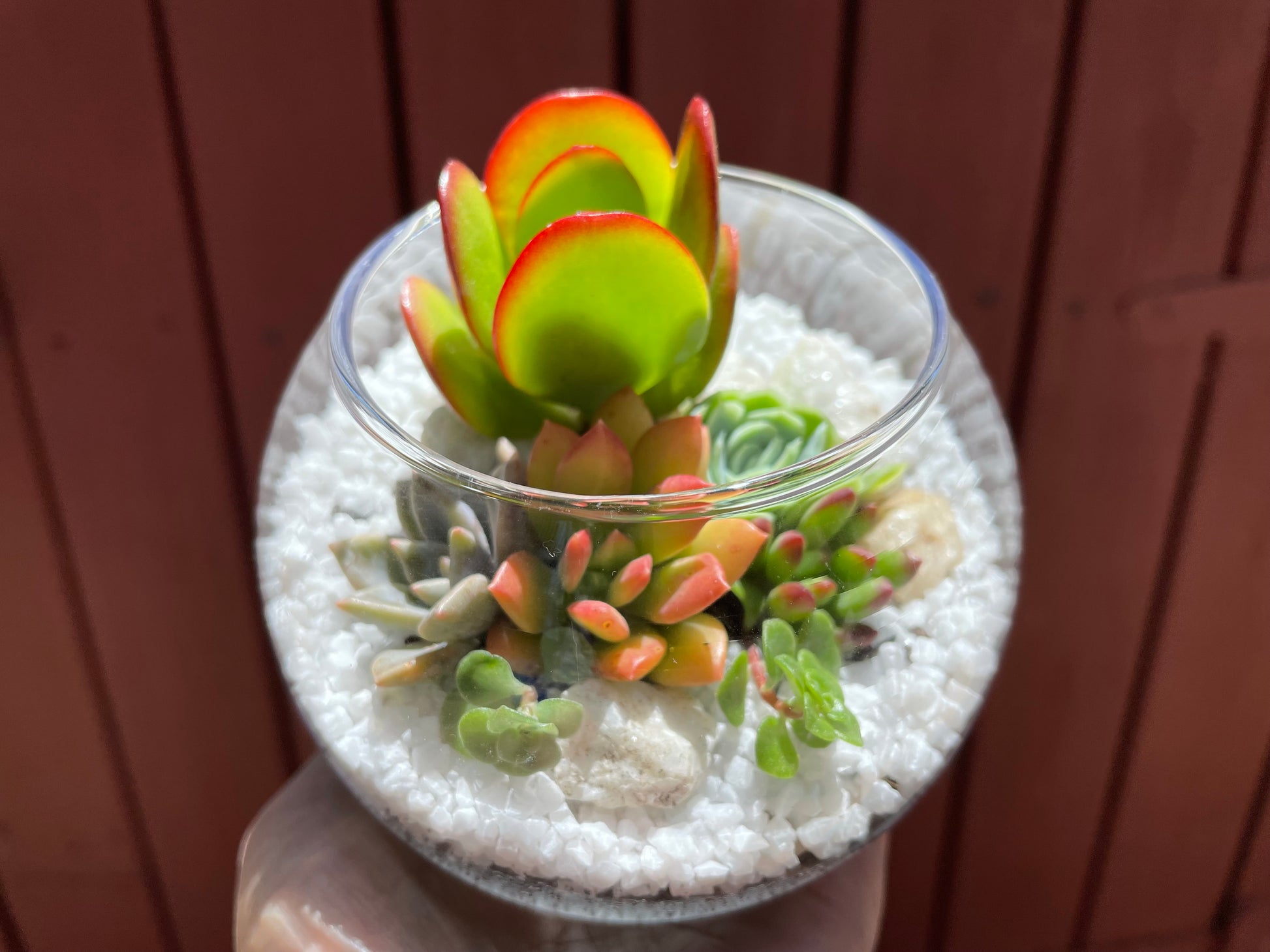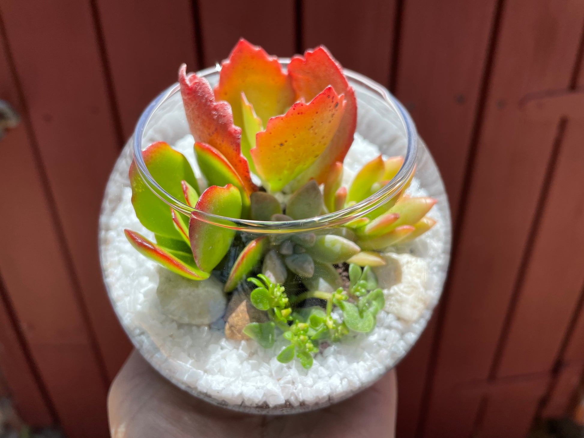 Succulent Favours: Explore a variety of succulent arrangements in glass pots with a 6.5cm open diameter, 10cm width, and 7.5cm height. Perfect for wedding party gifts, these are $12 each. A minimum order of 10 pots is required. They need 5 days to prepare. Pick up from Gymea 2227.