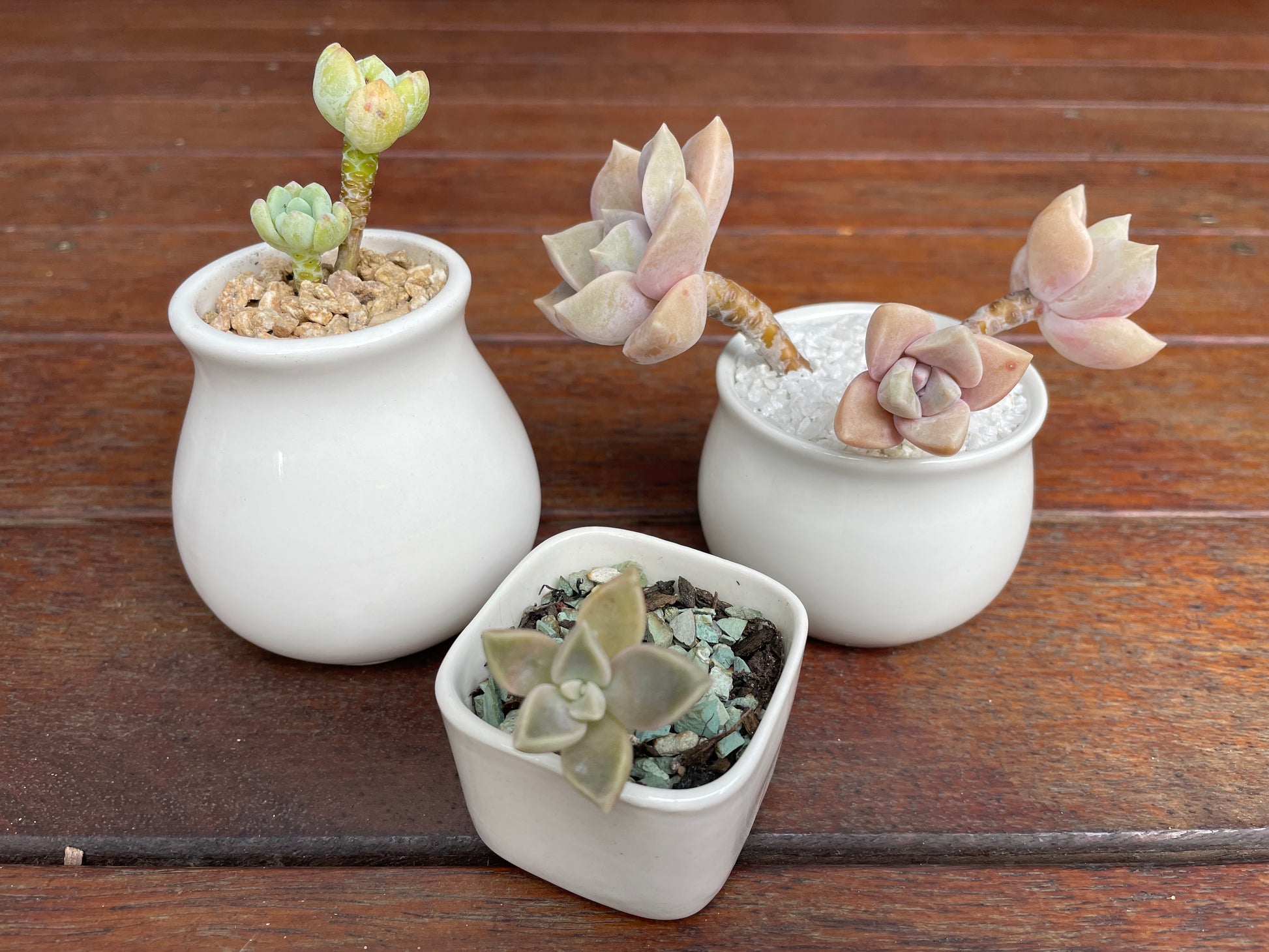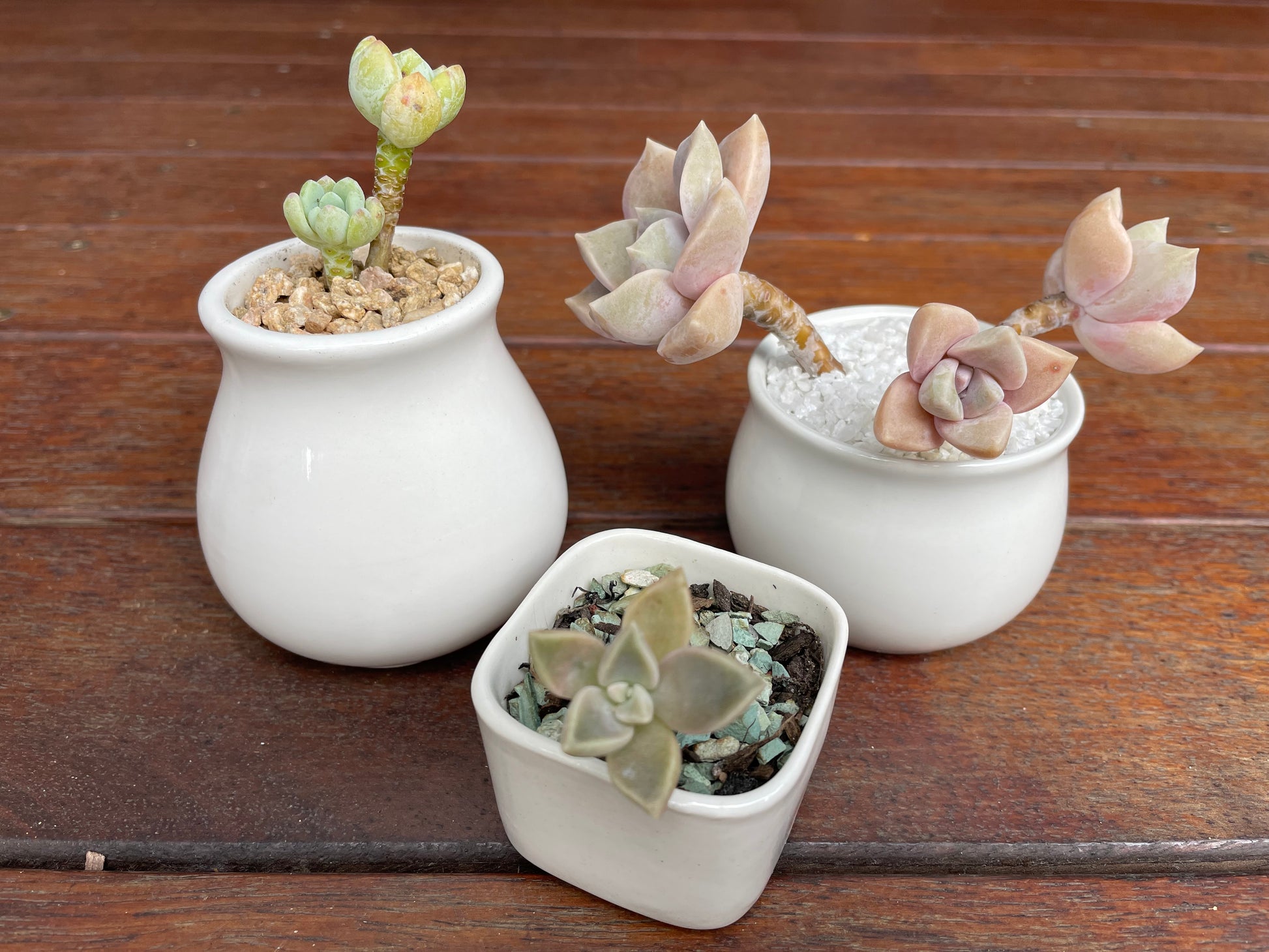 3x White Ceramic pots succulent cactus small plant planter mini size